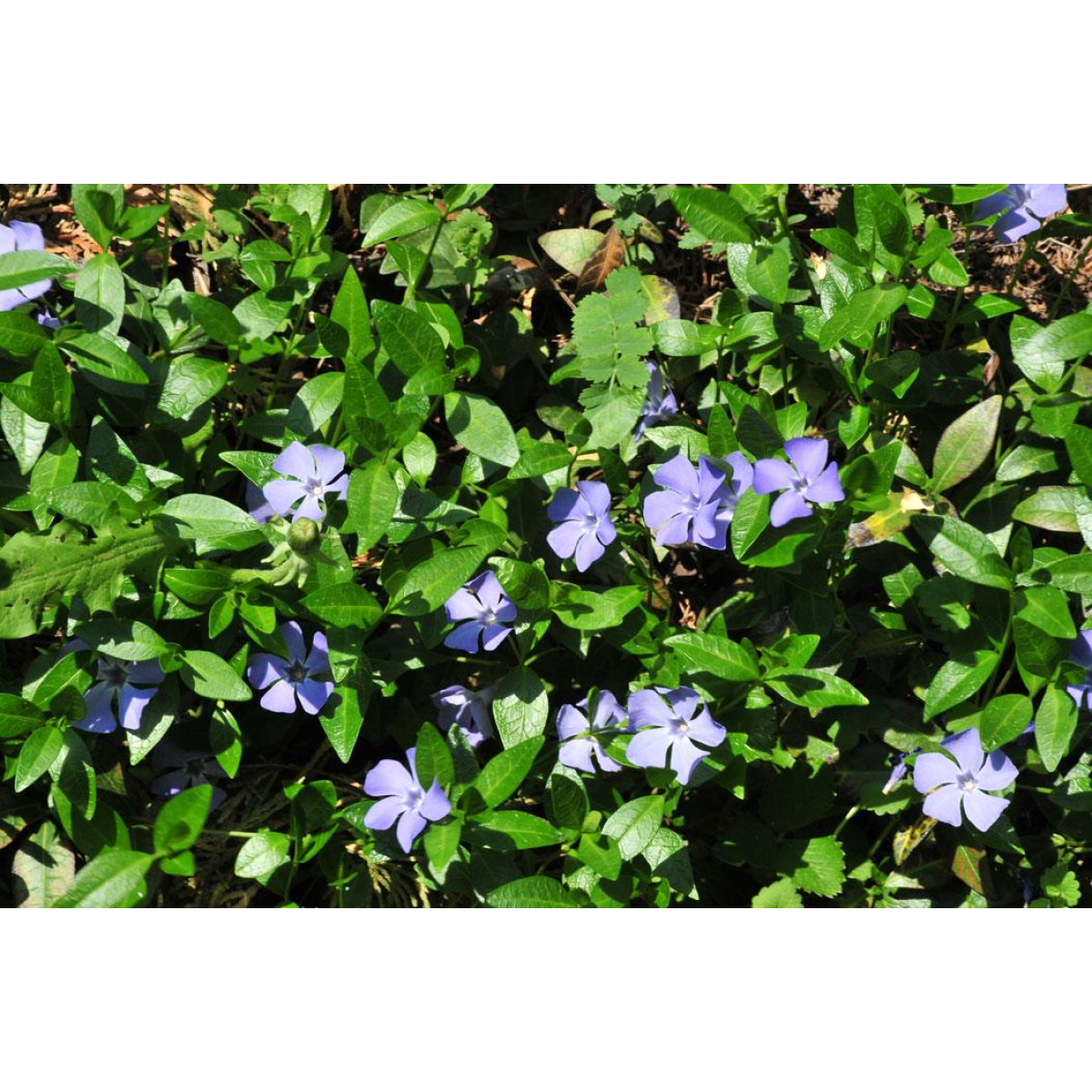 БАРВІНОК МАЛИЙ (Vinca minor) - багаторічна, вічнозелена рослина, що утворює дернинку заввишки до 5 см, квітконоси до 20 см. Цвіте в травні-червень 25-30 днів, повторно цвіте восени і до заморозків. Квітки сині до 5 см, одиночні, воронкоподібні, схожі на квітки флокса. Листя - вічнозелені, блискучі, темно-зелені, шкірясті. Стійкий до витоптування, любить стрижку або викошування, швидко розростається і вкорінюється.