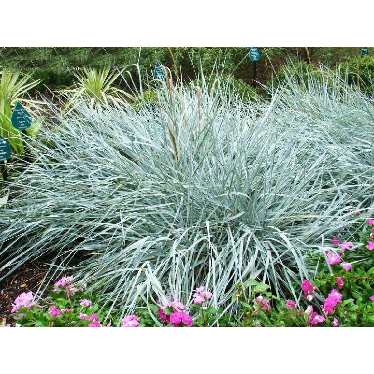 ЕЛІМУС - висота рослини під час цвітіння достигає 1 м, колоски густі, прямі та жорсткі, длиною до 20 см. Листя шириною до 3 см, длиною до 70 см, жорсткі та гострі. Вся рослина має гарний сизо-голубий колір. У тіні колір листів стає зеленішим. В кліматичних умовах Украіни вічнозелений.