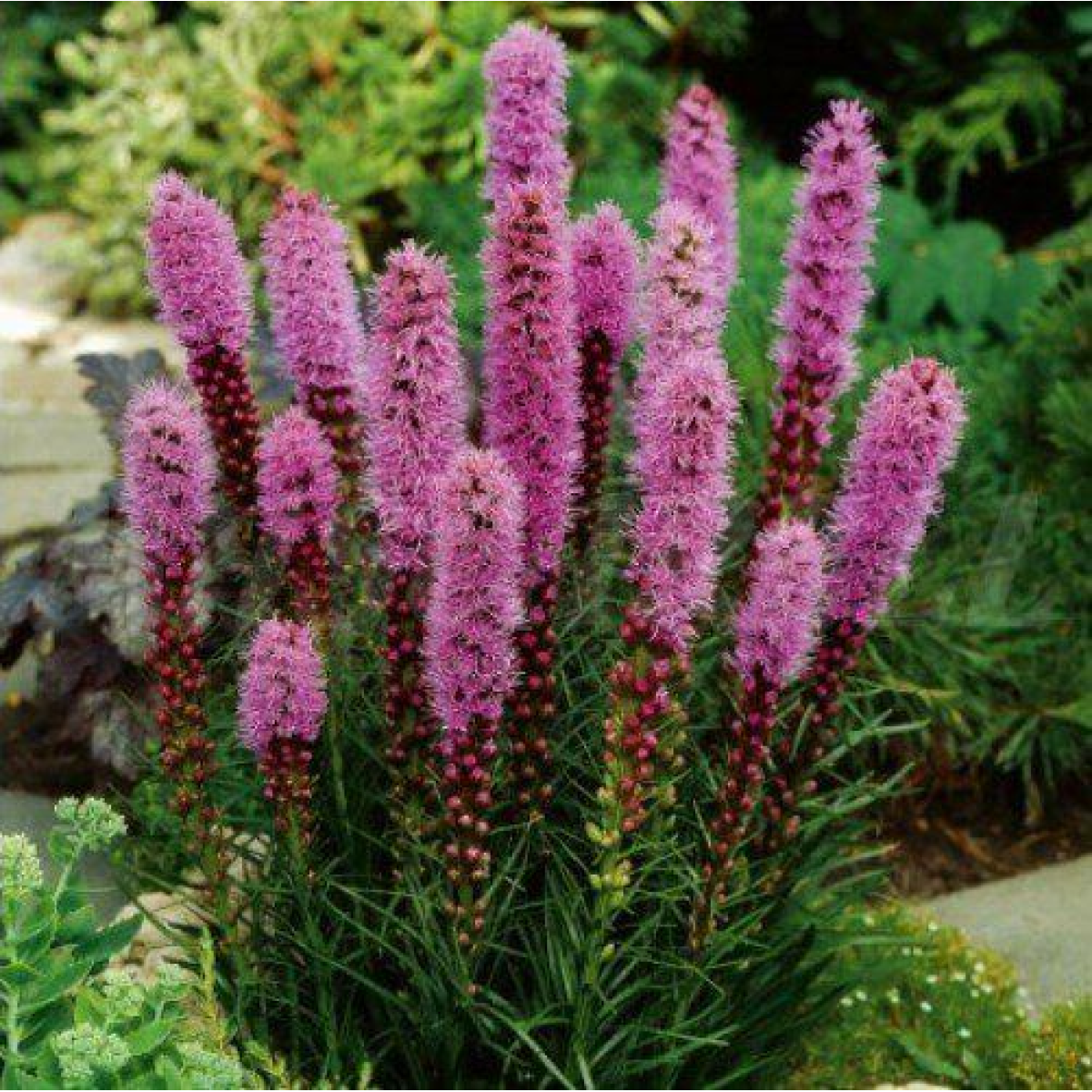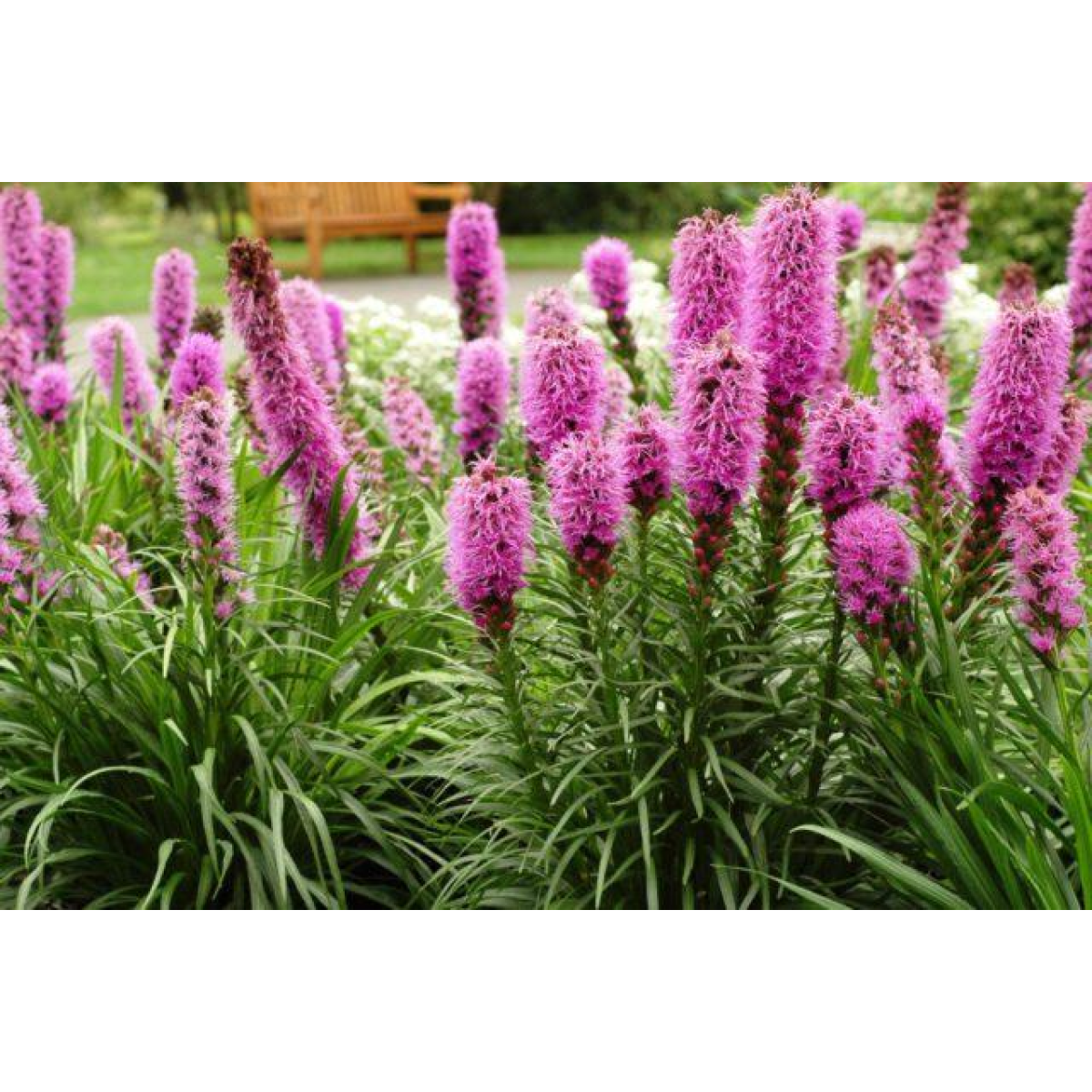 ЛІАТРІС – багаторічна рослина. У рослини також є кілька народних назв, таких, як сяюча зірка, весела пір'їнка. У Ліатрісу пряме або розгалужене стебло з безліччю тонкого загостреного лисття, закінчується яскравим суцвіттям, що нагадує за формою свічку. Колосовидні суцвіття досягають 50 см в довжину і, розпускаючись зверху вниз, схожі на волохату барвисту мітелку. Поверхнева клубненева коренева система прекрасно зимує і за формою нагадує переплетені між собою цибулинки. Цвіте ліатріс з середини травня по кінець серпня, більш рясно на другий і наступні роки після посадки. Рослина дуже ароматна завдяки природному ароматизатору – кумарину. Особливого шарму йому додає чарівний запах ванілі, змішаний з ледь чутними нотками свіжого сіна. Аромат довго зберігається в зрізаному вигляді, що дозволяє використовувати квітку у парфумерії.