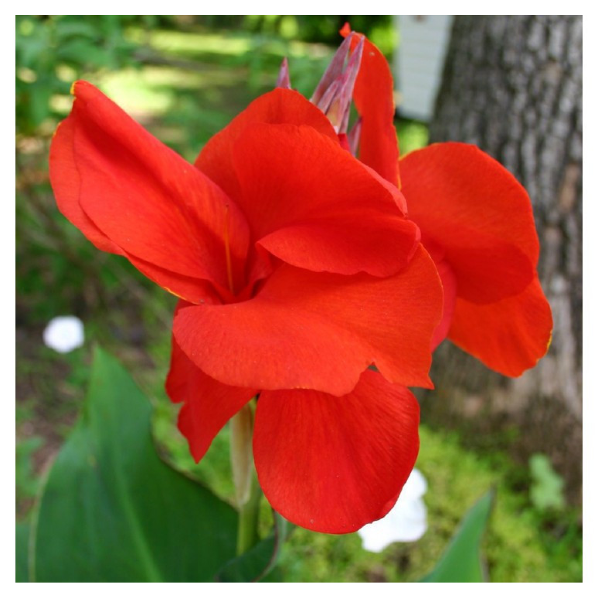 КАННА ВОДНА червона - самий невибагливий, швидкорослий сорт водних канн. Цвіте з травня до заморозків. Квіти яскраво-червоні, лист - яскраво-зелений, витягнутий, великий. Невибаглива до розміщення - може рости як на сонці, так і в тіні (у тіні менше цвіте). Виростає до 1-1,8 м у висоту. Через велику парусність листя горщик з канной вимагає закріплення на дні водойми, щоб не перекидатися при сильному вітрі (можна обкласти горщик цеглою, придавити камінням тощо). Сильно розростається - на 2-3 рік потребує пересадки у велику ємкість.