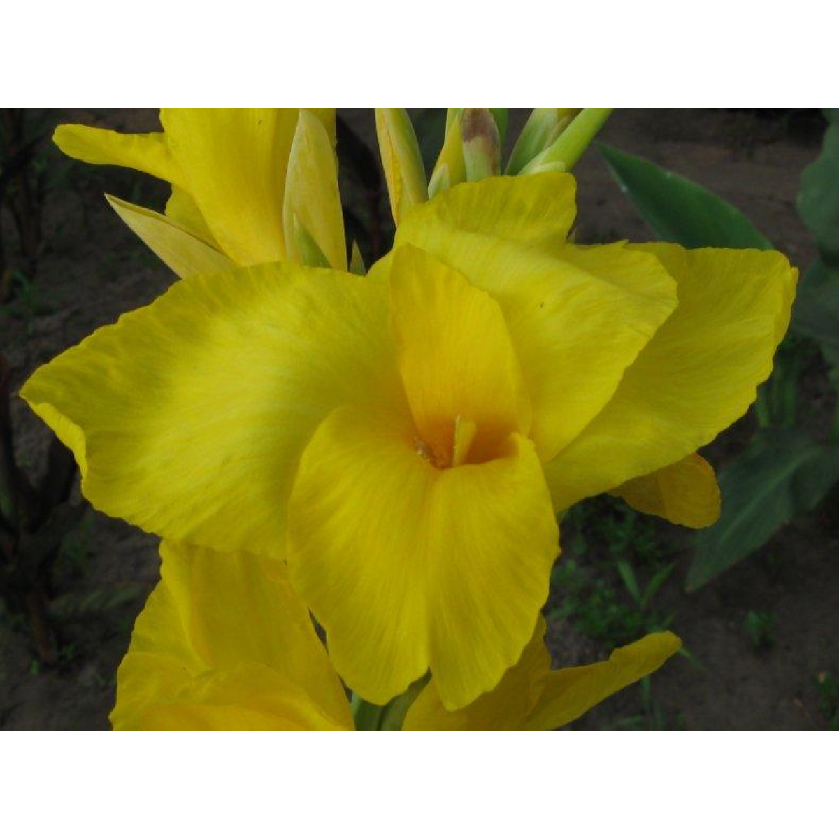 КАННА ВОДНА з великою жовтою квіткою - один з найкрасивіших сортів водних канн. Цвіте з червня і до заморозків. Квіти жовтіі, великі, по краю квітки курчяві, лист широкий, великий, світло-зелений. Невимоглива до розміщення - може рости як на сонці, так і в тіні (у тіні менше цвіте). Виростає до 0,7-1,0 м у висоту. Через велику парусність листя горщик з канной вимагає закріплення на дні водойми, щоб не перекидатися при сильному вітрі (можна обкласти горщик цеглою, придавити камінням тощо). Не сильно розростається - потребує пересадки у велику ємність на 3-4 рік.