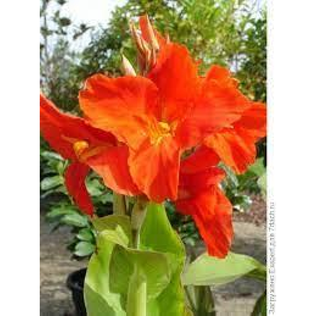 КАННА ВОДНА померанчева - один з невибагливих, швидкозростаючих сортів водних канн. Цвіте з травня до заморозків. Квіти -померанчеві, лист - яскраво-зелений, круглий, великий. Невимоглива до розміщення - може рости як на сонці, так і в тіні (у тіні менше цвіте). Виростає до 0,5-1 м у висоту. Через велику парусність листя горщик з канной вимагає закріплення на дні водойми, щоб не перекидатися при сильному вітрі (можна обкласти горщик цеглою, придавити камінням тощо). На зимівлю можна: прибрати у теплицю; обрізати листя і поставити в темне місце; занести додому і вирощувати як кімнатну рослину.