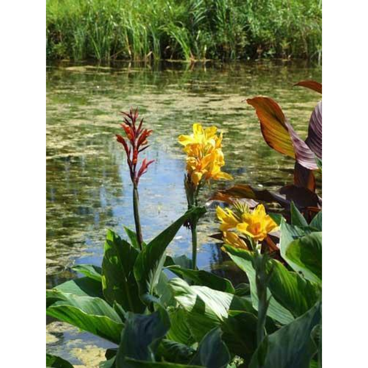 КАННИ ВОДНІ – дуже гарні квітучі рослини для ставка з великими листям і яскравими квітами на довгих квітконосах. Мабуть, з вертикально зростаючих рослин в ставку саме це - найкрасивіша. Канни будуть радувати вас своїм цвітінням з травня по жовтень місяць. Витримують підмерзання і низьку температуру повітря, але в ставку не зимують. Добре виглядають кілька різних кольорів канн, висаджених поруч. На зимівлю можна: прибрати у теплицю; обрізати листя і поставити в темне місце; занести додому і вирощувати як кімнатну рослину.