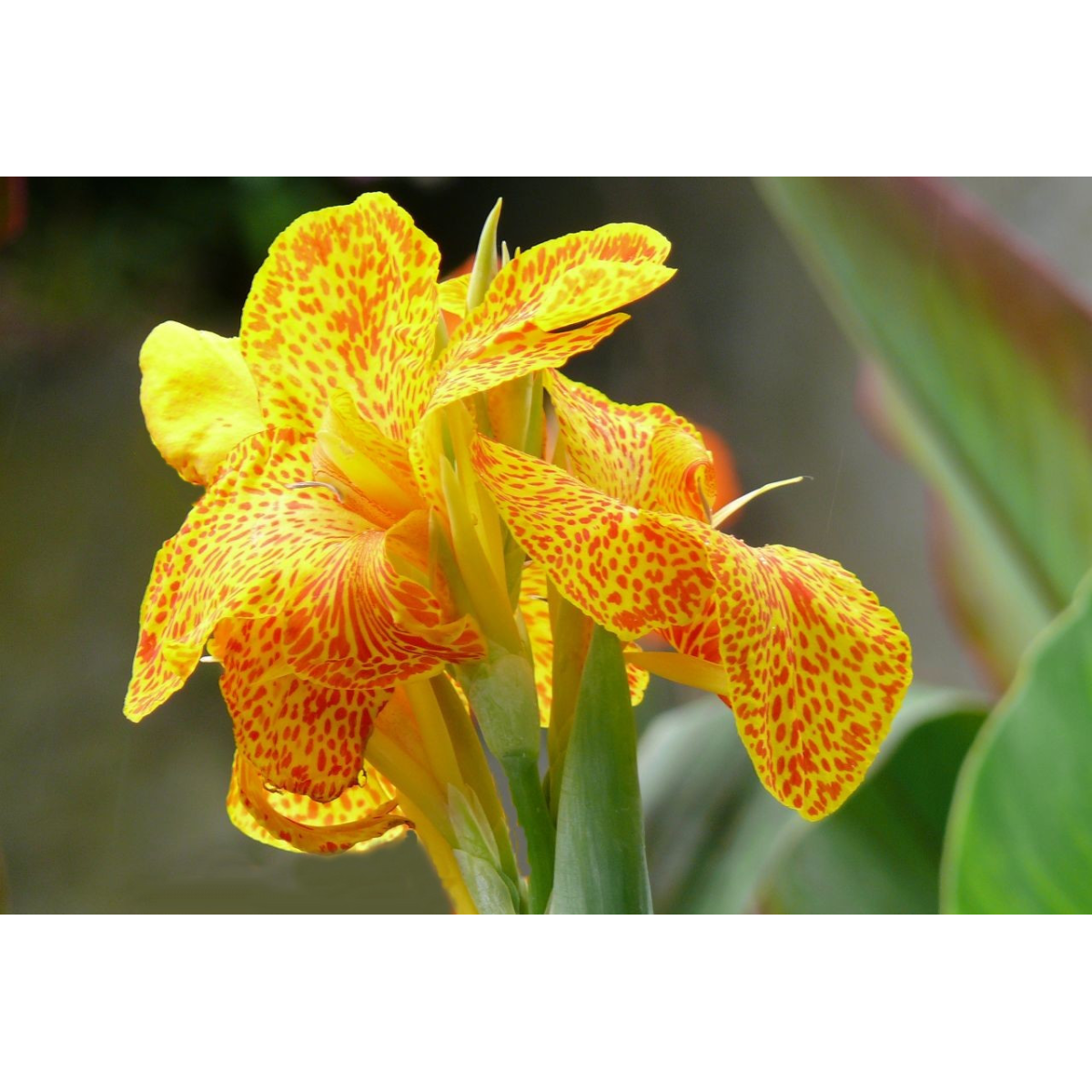 КАННА ВОДНА з великою тигровою квіткою - один з найкрасивіших сортів водних канн. Цвіте з червня і до заморозків. Квіти жовто-оранжеві, великі, в цяточку, лист широкий, великий, світло-зелений. Невимоглива до розміщення - може рости як на сонці, так і в тіні (у тіні менше цвіте). Виростає до 0,7-1,0 м у висоту. Через велику парусність листя горщик з канной вимагає закріплення на дні водойми, щоб не перекидатися при сильному вітрі (можна обкласти горщик цеглою, придавити камінням тощо). Не сильно розростається - потребує пересадки у велику ємність на 3-4 рік.