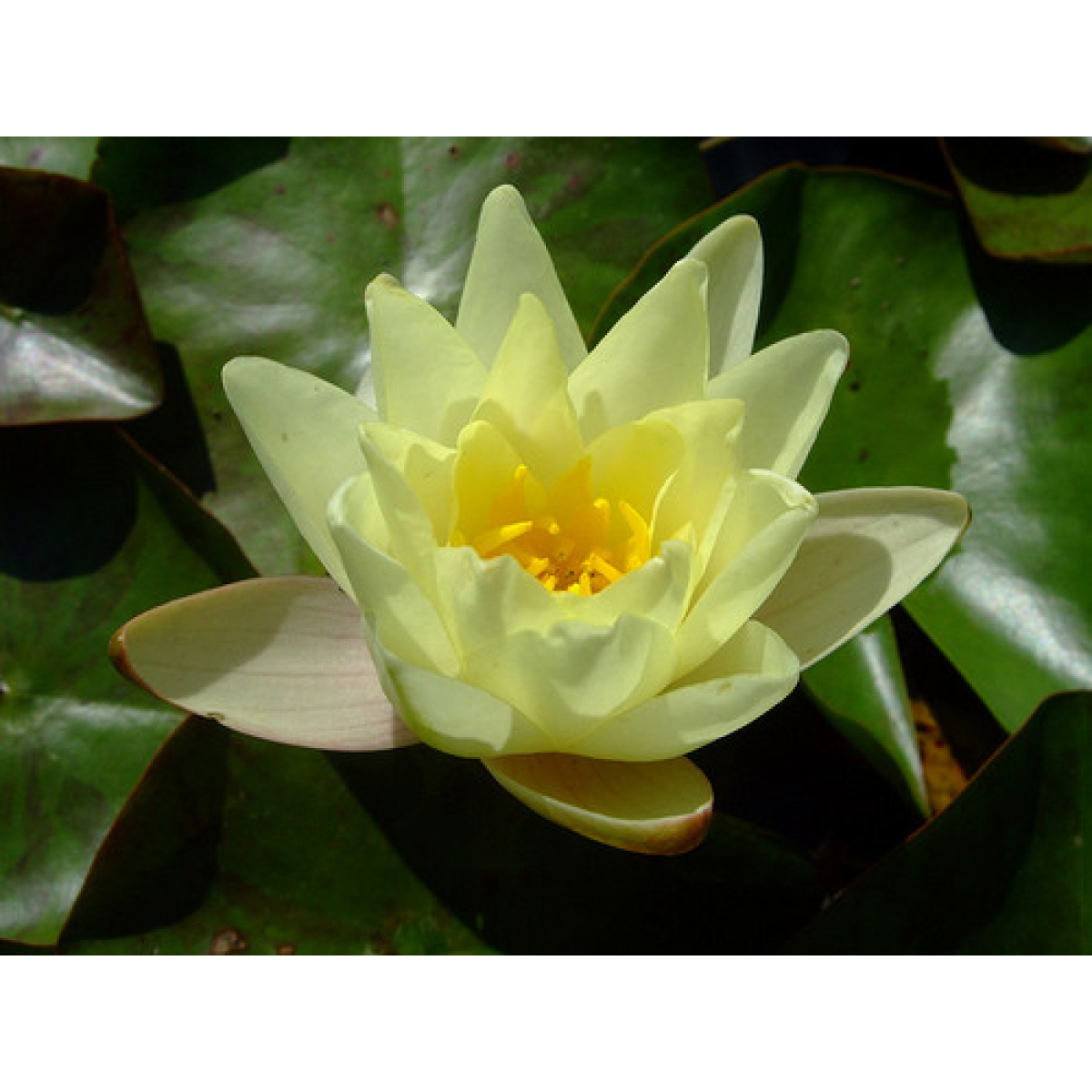 НІМФЕЯ Marliacea Chromatella - один з найбільш швидкозростаючих і невибагливих сортів німфей. Квітки лимонно-жовті, класичної форми, з тонким лимонним ароматом.В залежності від освітлення, квітка має більш насичений колір. Період цвітіння: червень-жовтень. Листя німфеї цього сорту мають коричневі цятки і є додатковою прикрасою. Практично не хворіє, невибаглива, легко переносить пересадку. Зимує в непромерзаючій водоймі. Підійде для початківців прудоводів. Для великих, середніх і малих ставків.