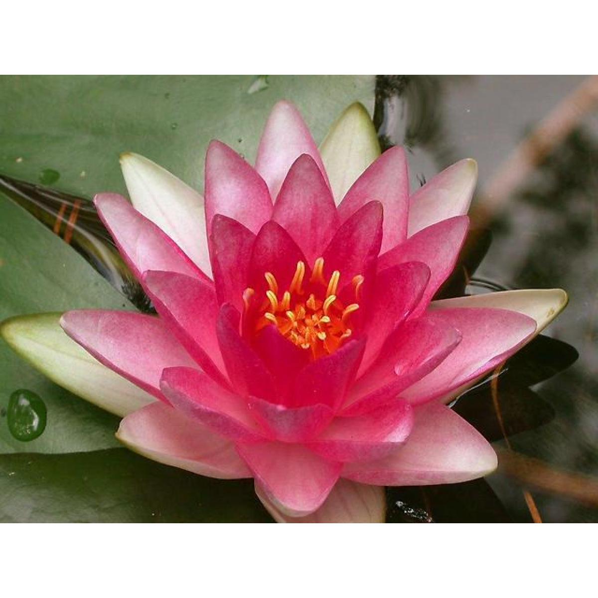 НІМФЕЯ Attraction - один з самих швидкорослих і невибагливих сортів. Квіти мають червоне забарвлення, з яскраво-жовтими тичинками, класичної форми. Пелюстки першого ряду плавно переходять в рожево - білий відтінок. Рясно цвіте усе літо, розмір листя і кольорів залежить від розміру ставка - у великих ставках листя і квіти дуже великі. При недостатній площі ставка частина листя стирчать над водою. Практично не хворіє, невибаглива, легко переносить пересадку. Дуже швидко розростається - вимагає постійного обмеження кореневої для контролю заповнюваної ставка. Зимує в непромерзаючій водоймі. Підійде для початківців прудоводів. Для великих, середніх ставків та природних водойм.