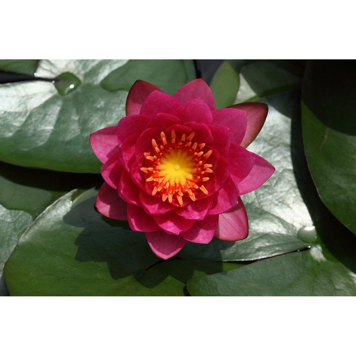 НІМФЕЯ James Brydon - середньорослий, компактний сорт з червоними квітами. Квітка насиченого яскраво-гранатового кольору, піоновідний (багатопелюсткова) . Листки середні, змінюють свій колір від яскраво-зелених до темно-зелених. Зимує в непромерзаючому водоймі. Підійде для маленьких ставків або для середніх з невеликою глибиною посадки.