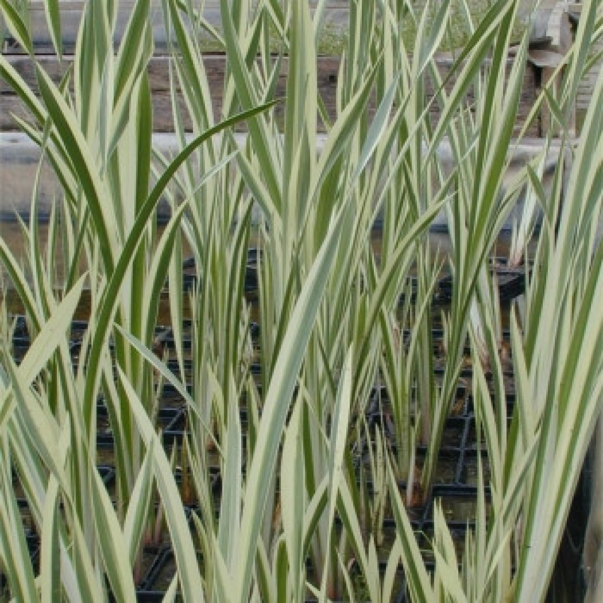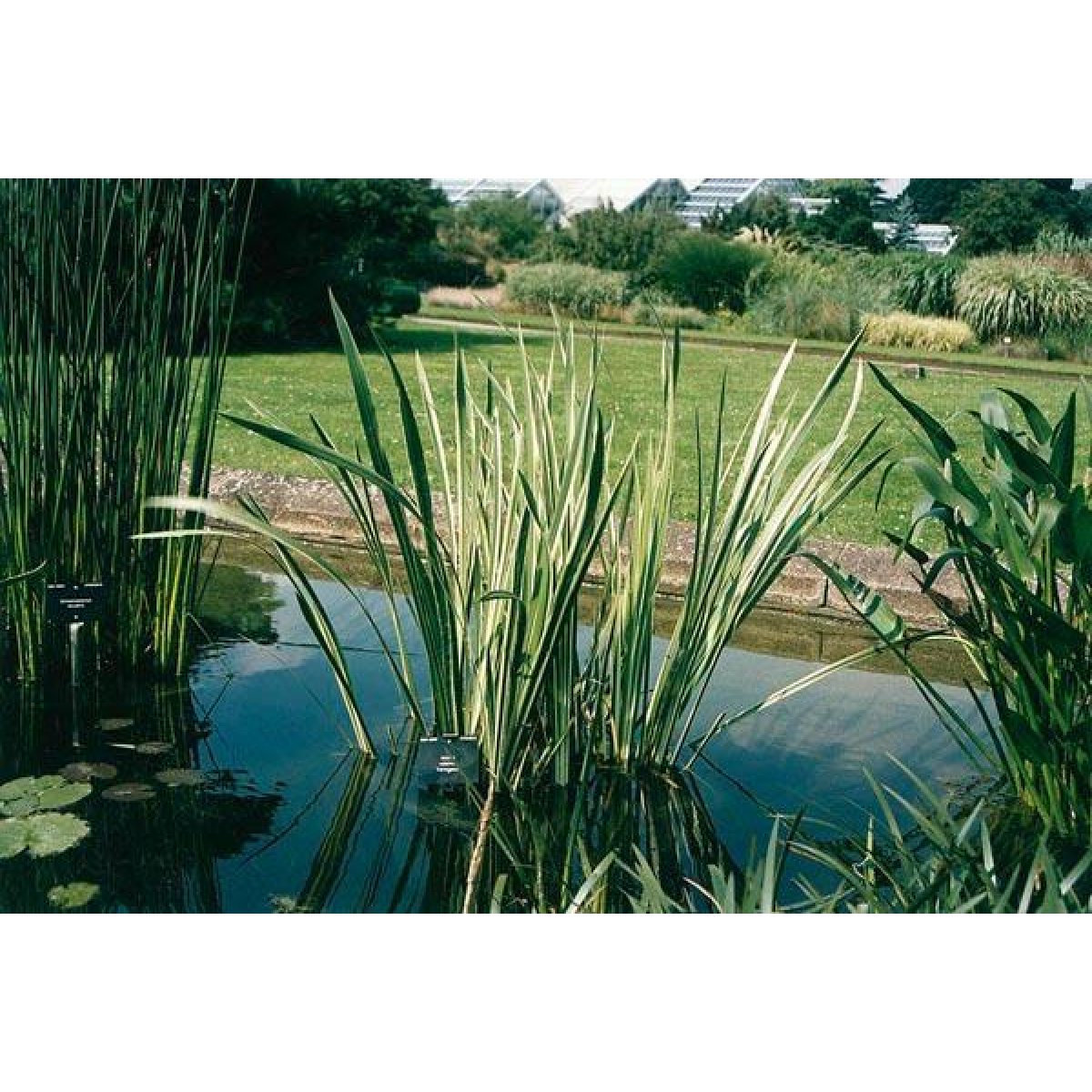 АІР ВАРІЄГАТНИЙ - прибережна рослина. Це варієгатна форма аіру болотного. Можна висадити безпосередньо в грунт біля берегу (в зоні затоплення або рясного поливу) або у воді (на глибині до 10-20 см) у горщику або безпосередньо у водойму. Розрастається повільно (на відміну від аіру болотного). У нашій кліматичній зоні чудово зимує прямо у водоймі. У дикій природі аір варієгатний не росте. Рослина має інсектицидну дію, рекомендується для посадки на біоплато.