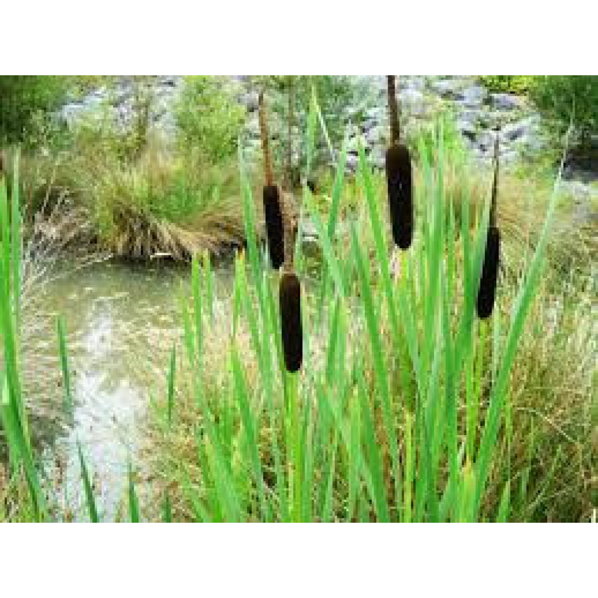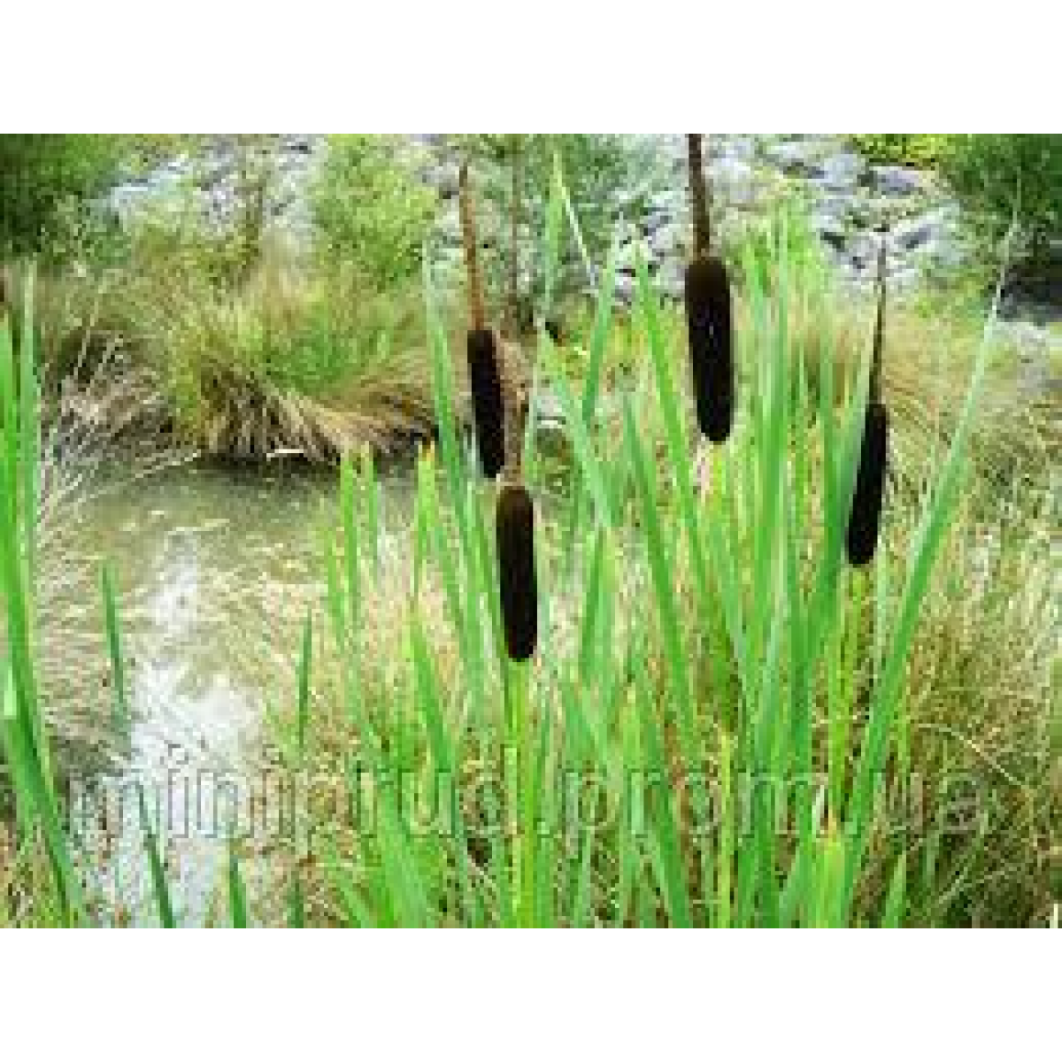 РОГІЗ ШИРОКОЛИСТИЙ або БОЧАРНА ТРАВА - багаторічна трав'яниста рослина. Рослина легко впізнається за товстим буро-коричневим щільним, циліндричним суцвіттям-початкам. Виростає заввишки до 2,5 м, стебло зазвичай до 1 м заввишки, але часто досягає 2 м, виносить занурення до 1,5 м. Швидко розростається. Вимагає контролю росту.