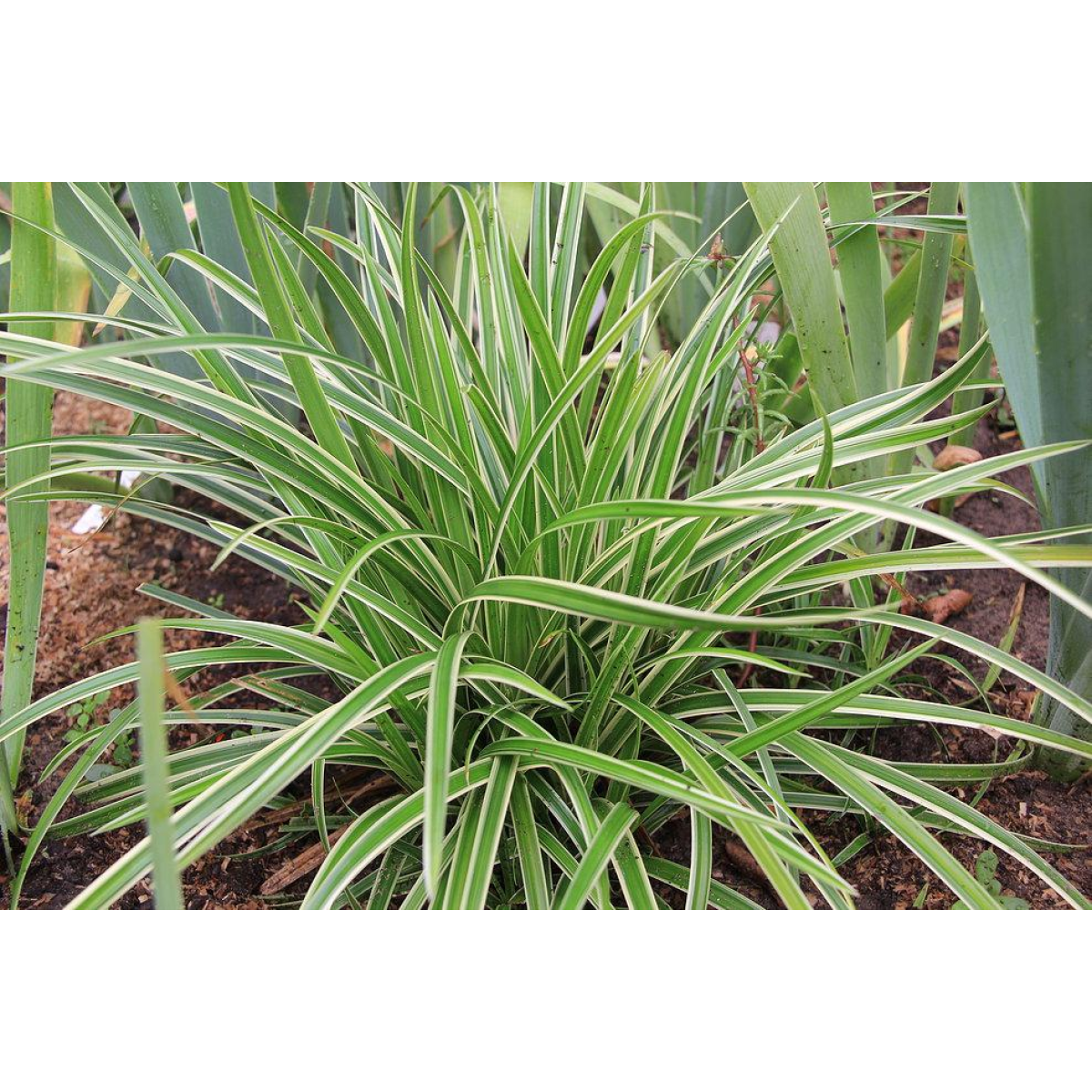 ОСОКА МОРРОУ варієгатна - дуже декоративний сорт, родом з Японії. Досягає 20-30 см у висоту. Листки цупкі, шкірясті, дугасті, зеленого кольору з кремово-білою смугою по краю листа. Суцвіття виростають невисокі, зелені, колоски до 30 см у висоту. Цвіте з червня по липень. Декоративна своїм яскравим блискучим листям. В кліматі України вирощується як вічнозелена рослина. Розростається повільно. Одна з найменших осок, тому ми радимо садити саме її близько невеликих водойм.