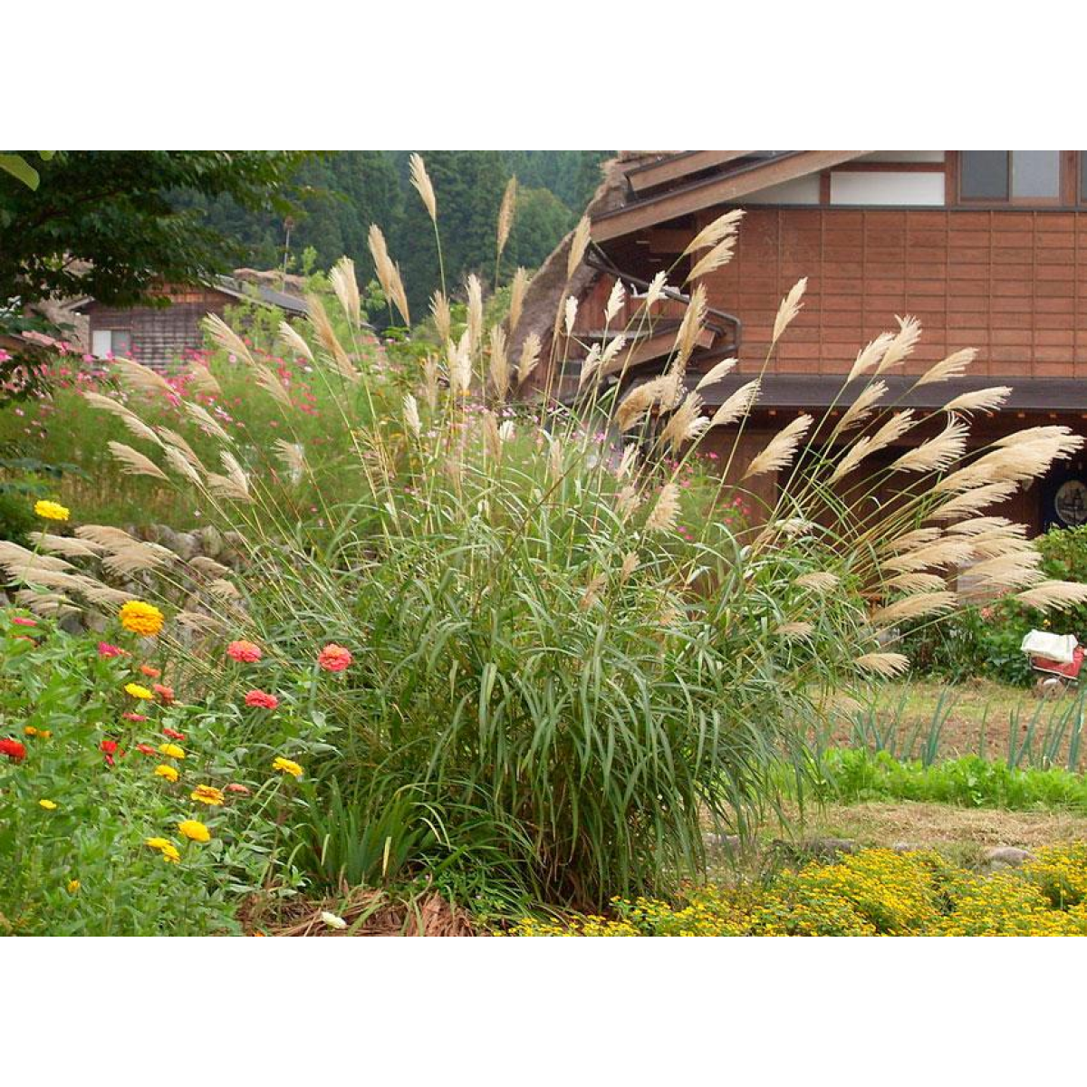 МІСКАНТУС китайський - багаторічний потужний злак з жорсткими шорсткими лінійними листками. Колоски одноквіткові, зібрані в пухкі метелки. Для міскантуса відводять відкриті сонячні ділянки з родючими суглинними грунтами. Для того, щоб отримати гарну потужну куртину, треба обмежити по периметру місце посадки, глибина обмежувача невелика, 10-15 см, так як коренева система поверхнева. Полив регулярний, помірний. При нестачі води рослина погано розростається. Мискантусы служать гарною прикрасою берегу водойм, їх висаджують окремо або групами в міксбордерах, рокарії, біля газонів. Рослини декоративні з весни до початку зими.