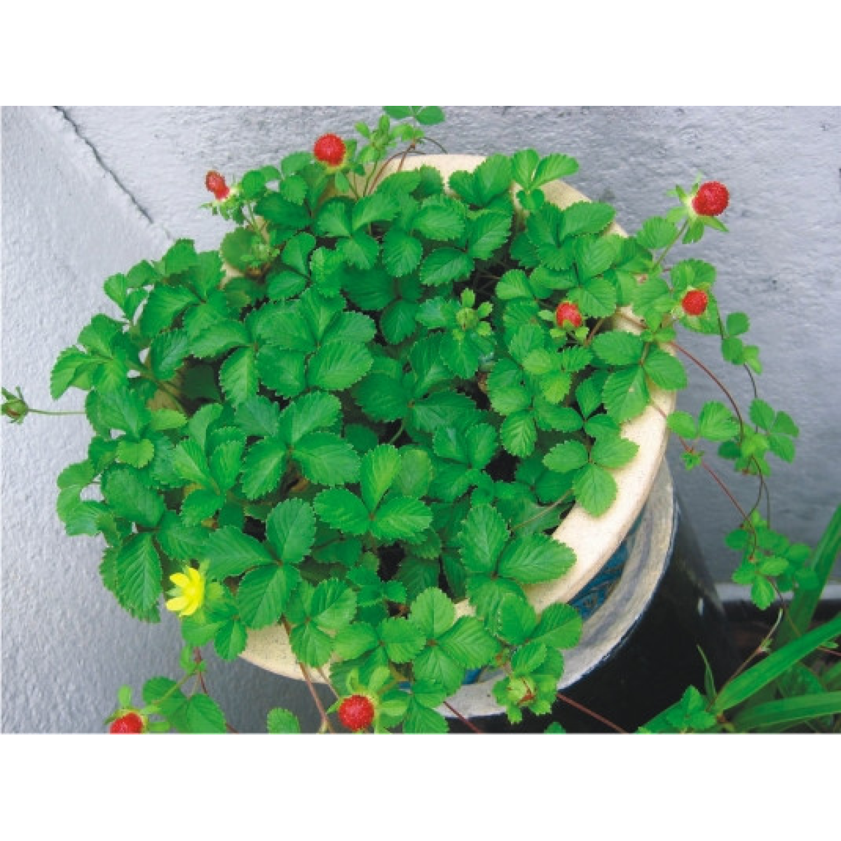 ДОРОСЛИЙ КУЩ ДЮШЕНІЇ у технологічному горщику. З технологічного горщика методом перевалки рослину можна садити навіть влітку.