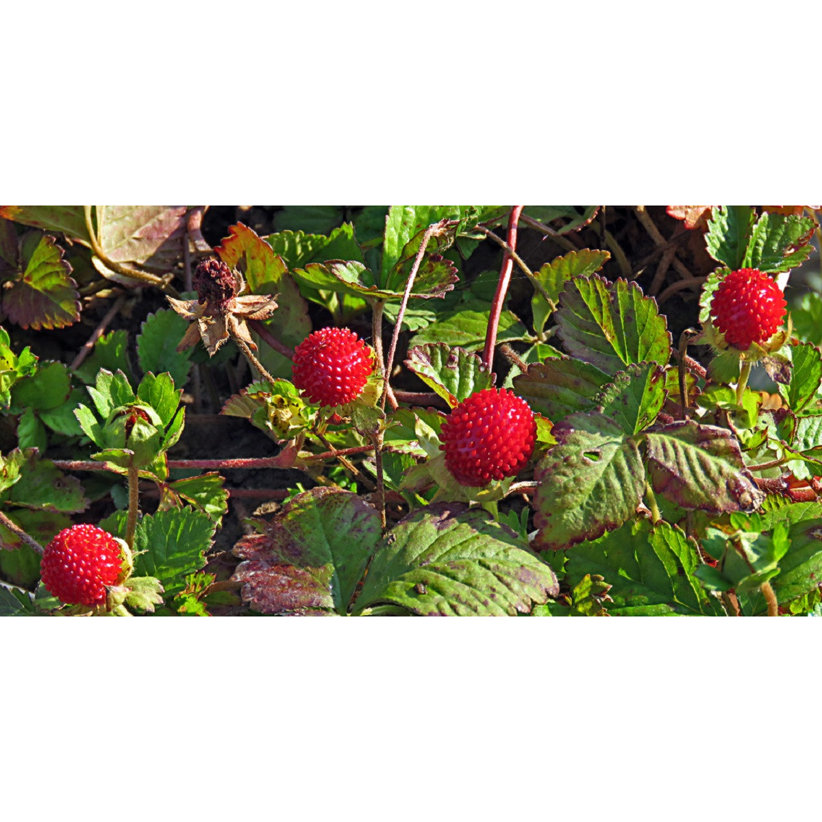 ДЮШЕНЕЯ ІНДІЙСЬКА – Duchesnea indica (Andr.) Focke - багаторічна рослина з облиственими, волосистими, повзучими стеблами до 100 см завдовжки, своїм зовнішнім виглядом нагадує суницю. Листя численні, трійчасті, на черешках, квітки поодинокі, 1-1,5 см в діаметрі, жовті, на довгих квітконосах. Цвіте з травня протягом усього літа. Плоди червоні, соковиті, але абсолютно позбавлені смаку. У кліматичних умовах України зберігає листя взимку.