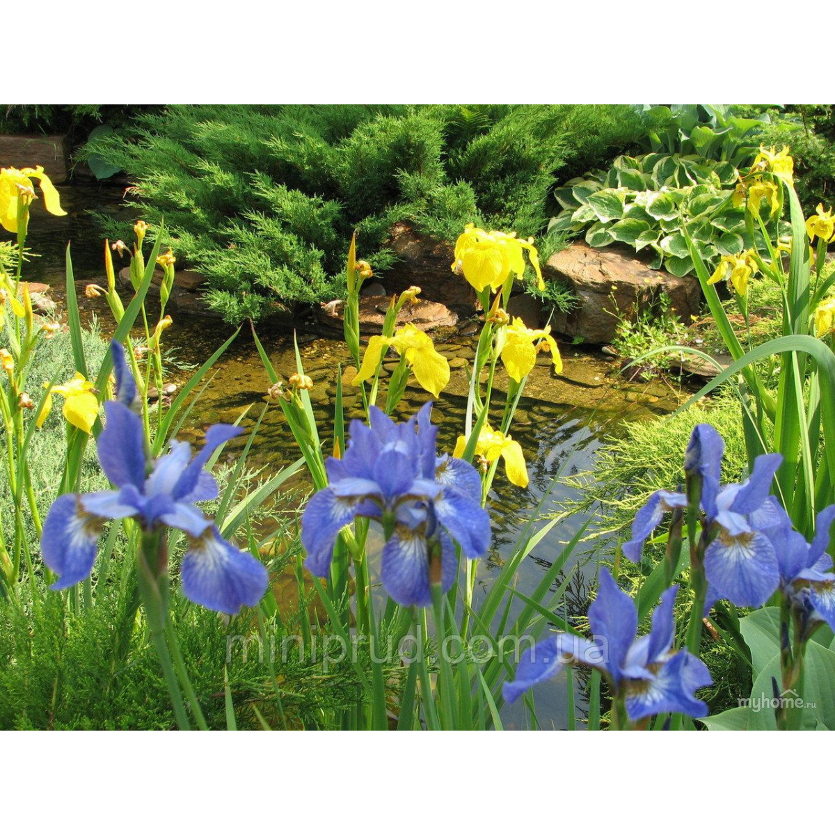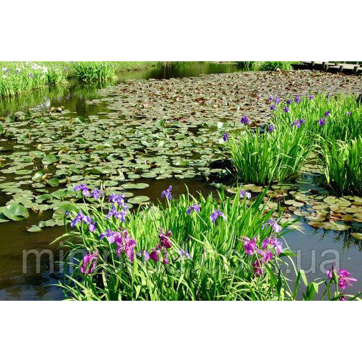 ІРИС ВОДЯНИЙ КАСАТИК (синій) - мілководна рослина. Можна висадити безпосередньо в грунт біля берегу (в зоні затоплення або рясного поливу) або у воді (на глибині до 10-15 см) в сітчастому горщику або безпосередньо в ставок. У нашій кліматичній зоні чудово зимує прямо у водоймі. Рекомендується для посадки на біоплато, досягає у висоту 60-100 см, має стрілоподібні вузькі листя і цвіте синіми квітками. Цвіте синій ірис в травні-червні. Ірис любить рости на сонячних, добре освітлених місцях, проте переносить затінення також дуже добре.