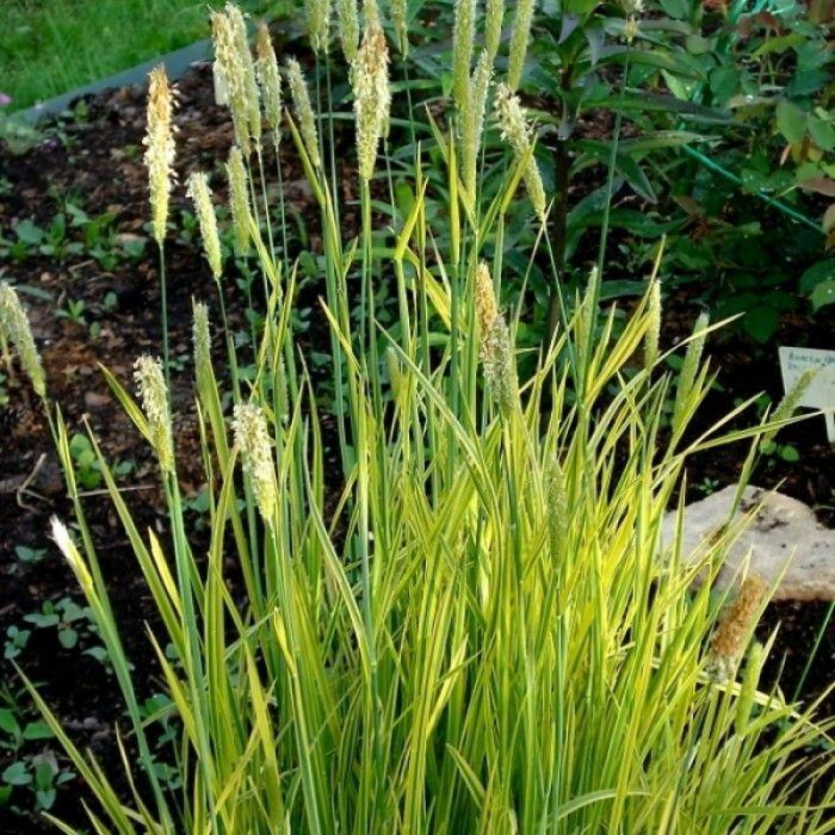 ЛИСОХВІСТ ВАРІЄГАТНИЙ- багаторічна декоративна трав'яниста рослина, декоративний злак. Перистощетинник, або як його ще називають пеннісетум, є одним з найбільш популярних трав. Приваблює фонтаном вигнутого, блискучого, зелено-жовтого листя і пухнастих суцвіть у вигляді колосовидних метелок. Цвіте у серпні-вересні. Утворює невелику компактну купину. Восени листя набувають золотисто-жовтий колір, а висохлі волоті стають сріблястими. Рослини залишаються привабливими і взимку. Висота близько 30-40см. Незважаючи на посухостійкість, добре росте на вологих грунтах, що дозволяє висаджувати його біля водойм.