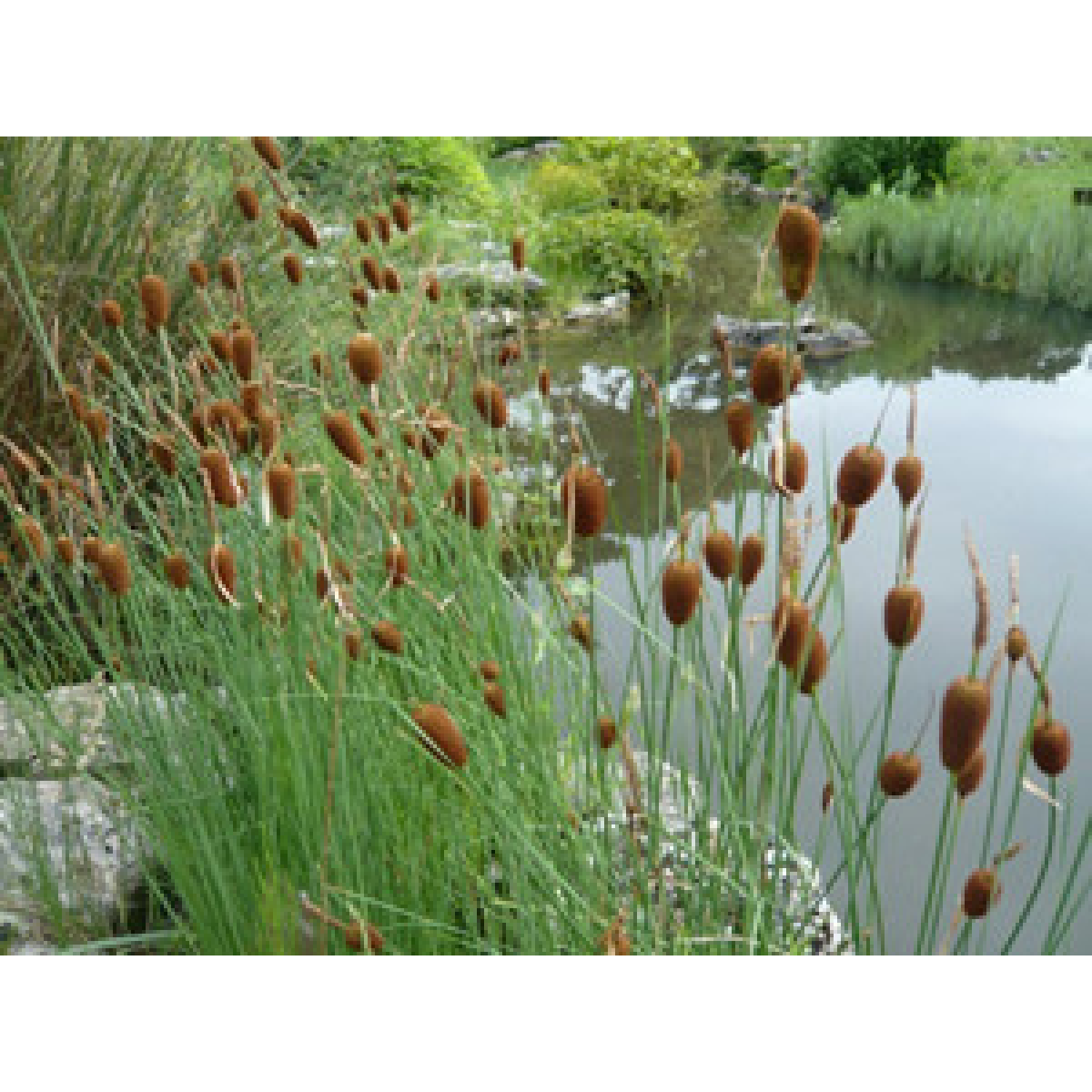 ВЕЛИКИЙ КУЩ РОГОЗУ МІНІМА, посаджений в сітчастий горщик. Не вимагає пересадки, готовий для проживання у водоймі.