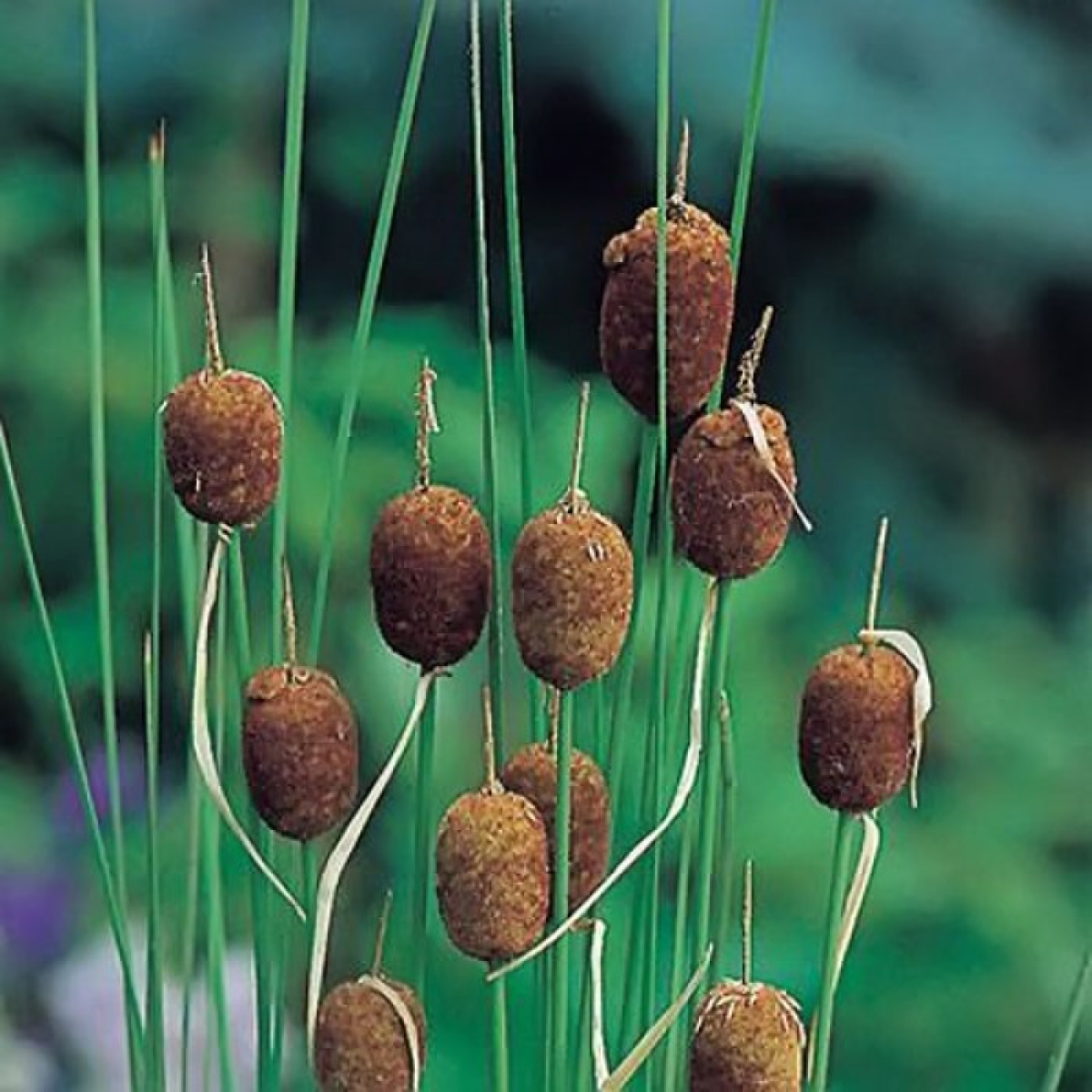 РОГІЗ МІНІАТЮРНИЙ - найменший з рогозів, дуже декоративний. Це багаторічна водна та болотяна трав'яниста рослина, зазвичай виростає до 0,7 м заввишки. Гойдалки короткі, товсті, майже круглі, до 4 см. Можна висаджувати у вологий грунт або на мілководді, мілинах і по берегах водойм на глибині 5-15 см. Невибагливий, повільно розростається. В Україні зимує у водоймах.