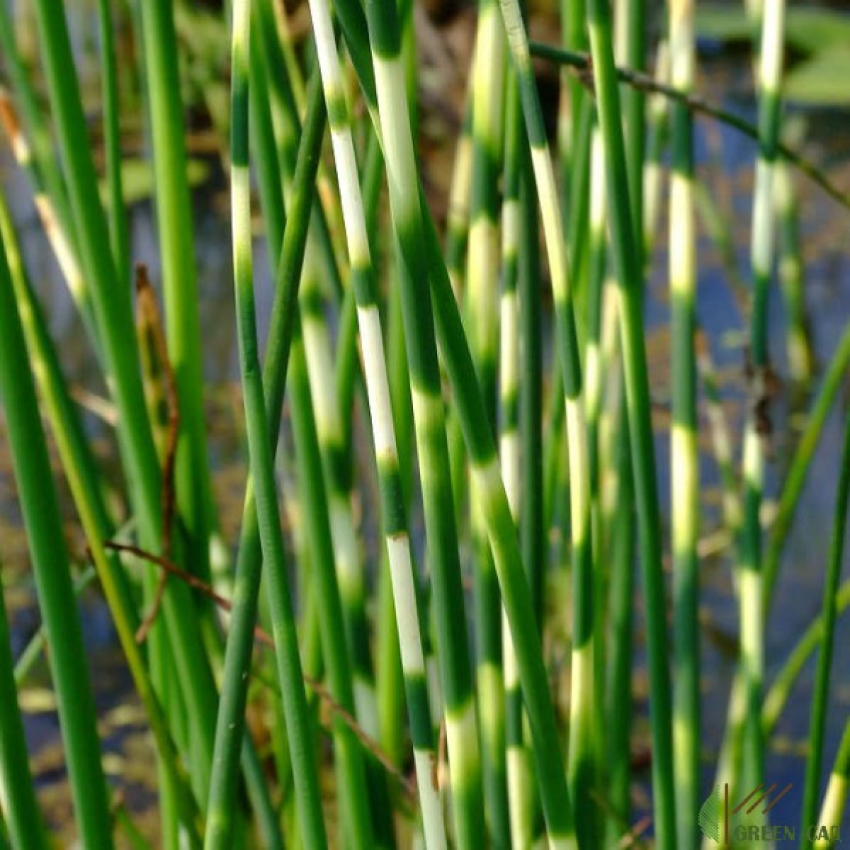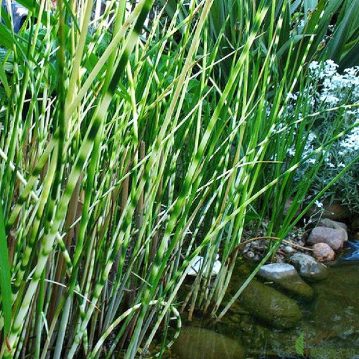 ОЧЕРЕТ ОЗЕРНИЙ ЗЕБРИНА - високодекоративний, варієгатний сорт очерету, дуже гарний. Ця багатолітня і болотяна трав’яниста рослина виростає до 1 метрів заввишки. Можна висаджуватися в вологому ґрунті чи на мілководді, мілях і вздовж водних глибин на глибині 5-25 см, повільно розростається. В Україні зимує у водоймах.