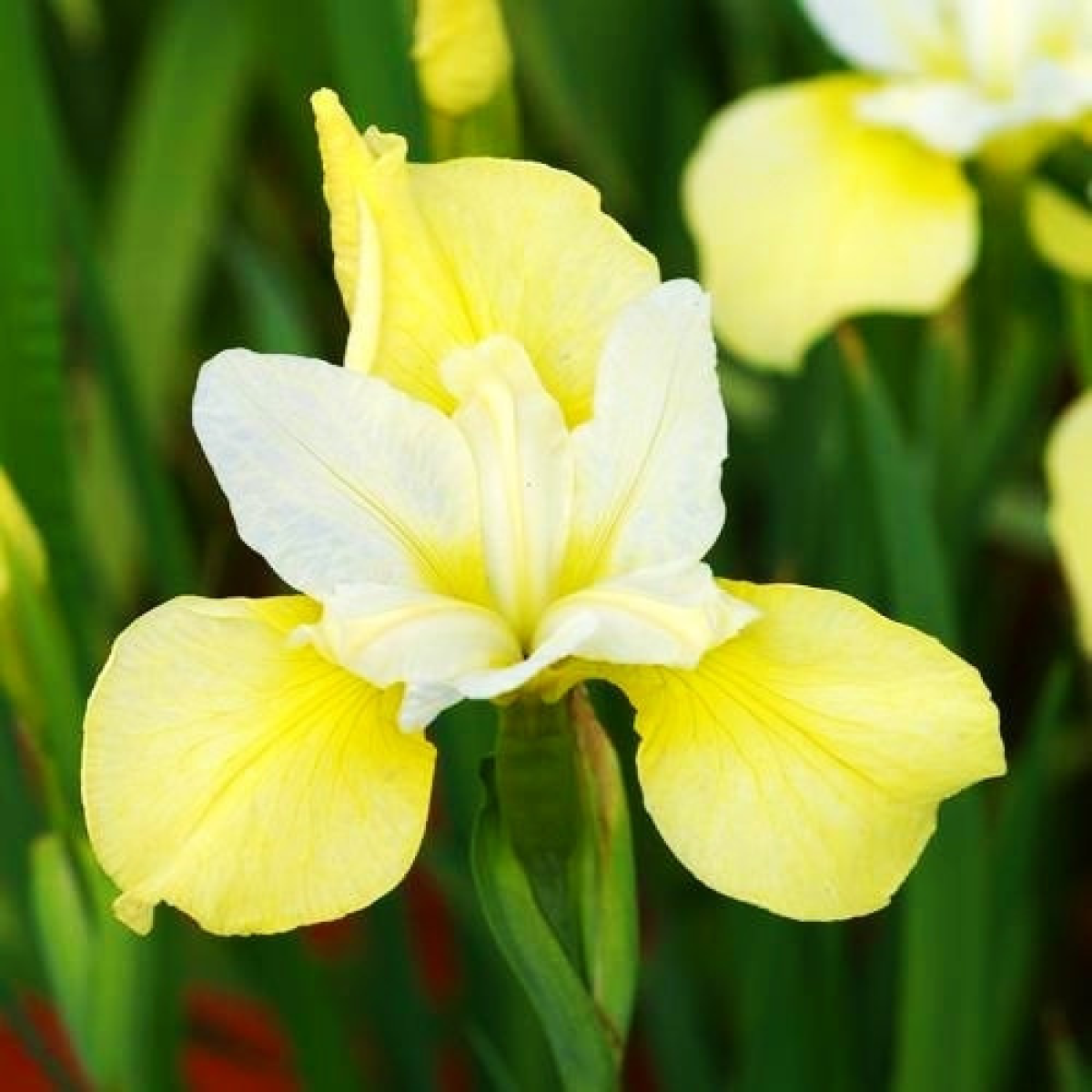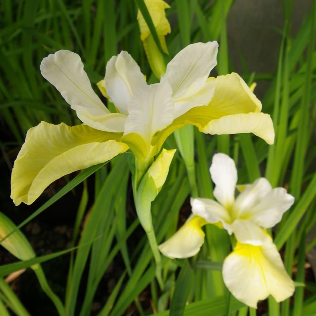 ДОРОСЛИЙ КУЩ ІРИСА СИБІРСЬКОГО ЖОВТОГО в технологічному горщику. Це рідкісний кущ іриса сибірського, високодекоративний. Витримуэ короткочасне затоплення.