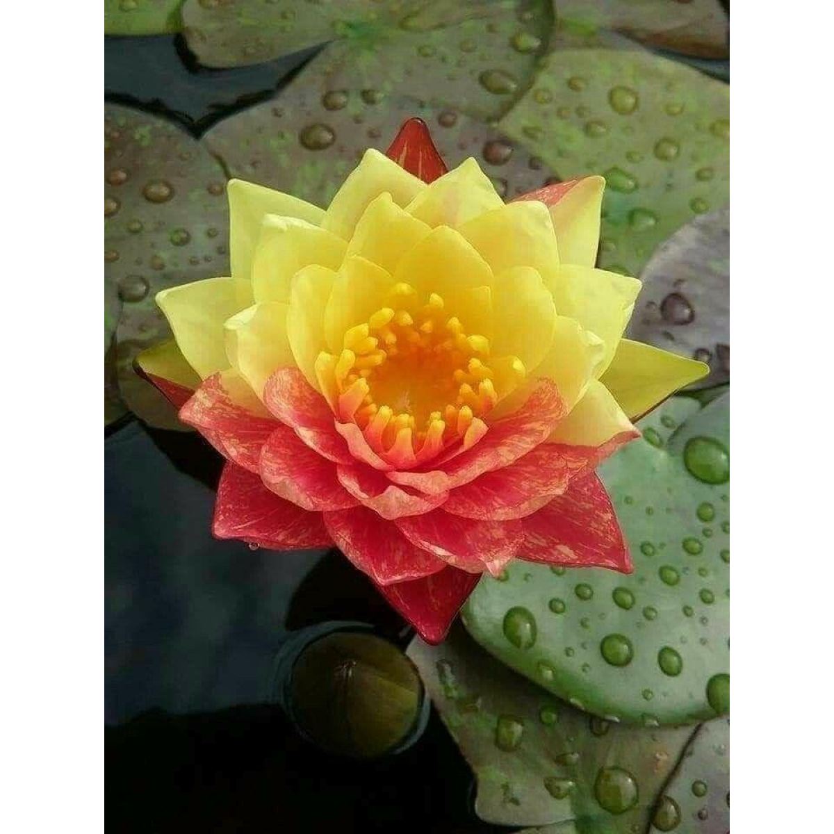 НІМФЕЯ ВАНВІЗА - один з найкрасивіших і великих сортів. Квітка дуже велика, червоно-жовта, зірчаста з подовженими пелюстками, яскраво-жовті тичинки. Кожна квітка має свій окрас - від рябих до плямистих. Квітка стирчить над водою. Молоде листя зелене з бурими розводами і каштановим крапом дуже велике. Рясно цвіте усе літо. Дуже великий сорт - для середніх або великих ставків. Зимує в непромерзаючій водоймі.