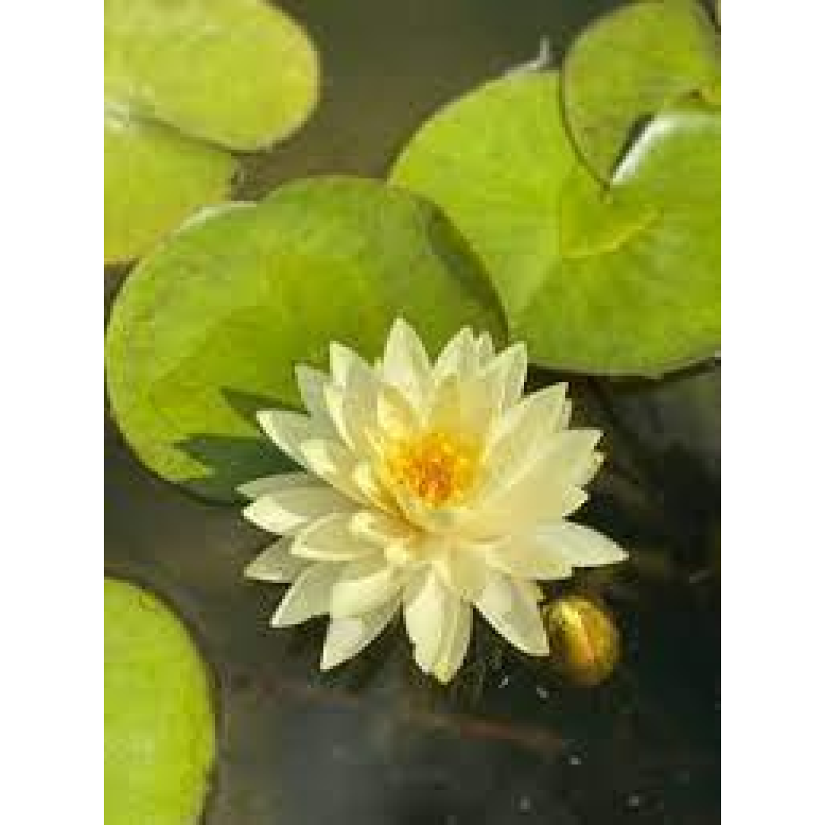 НІМФЕЯ ДЕНВЕР - один з найкрасивіших та великих сортів жовтих німфей. Квітка дуже велика, кремово-жовта, блідо-жовта, пишна, яскраво-жовті тичинки. Листя зелене, з ледь помітними бурими розводами і каштановим крапом дуже велике. Рясно цвіте усе літо. Сорт середньорослий - підійде для мельнких, середніх або великих ставків. Зимує в непромерзаючій водоймі.