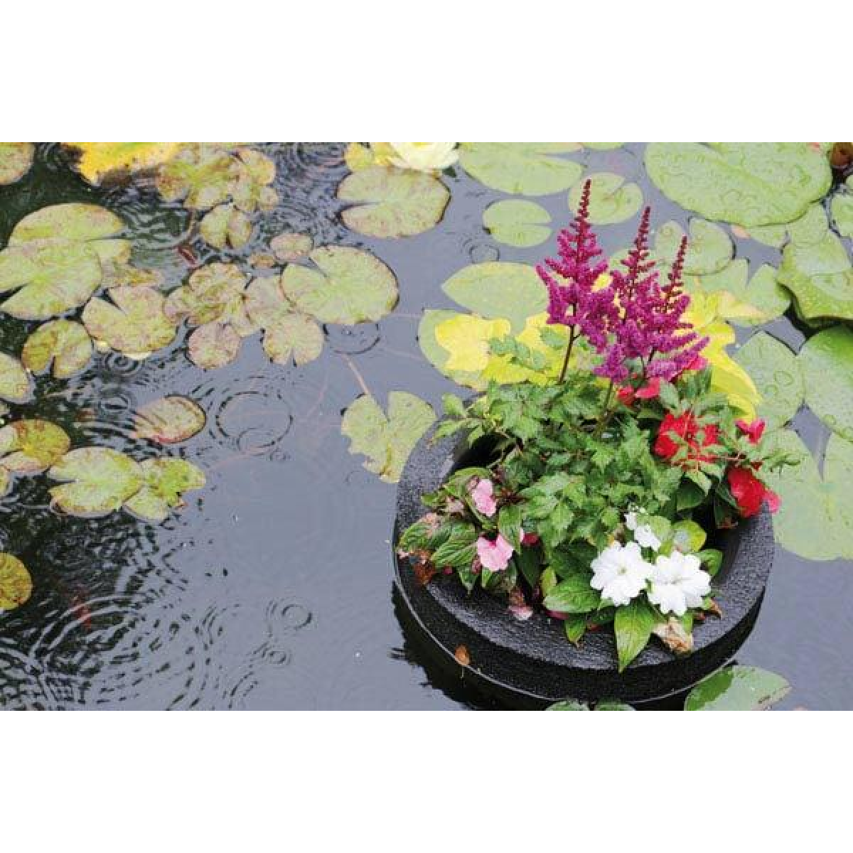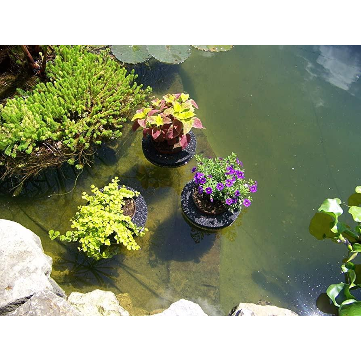 Ця товарна позиція - плаваюча матриця для облаштування плаваючого острова, водної клумби діаметром 30 см і висотою 5 см. Представляє собою основу у спеціальному чохлі із мішком для посадки рослин (чохол при необхідності можна замінити). Рослини можна посадити як беспосередньо у мішок, перед цим засипав туди грунт, так і в горщик для водних рослин. У нас можна придбати горщик, підходящий за розміром (круглий сітчастий діаметром 22см, круглий 23см), висадити туди рослини та вставити його у матрицю острова. Також у продажу є готові варіанти рослин, що вже посаджені у горщики - їх достатньо просто вставити в острів. Знизу на поплавку є еластичний шнур, який дозволить прив'язати якірь до острова чи зафіксувати острів-клумбу біля берега в тому місці, де вам подобається.