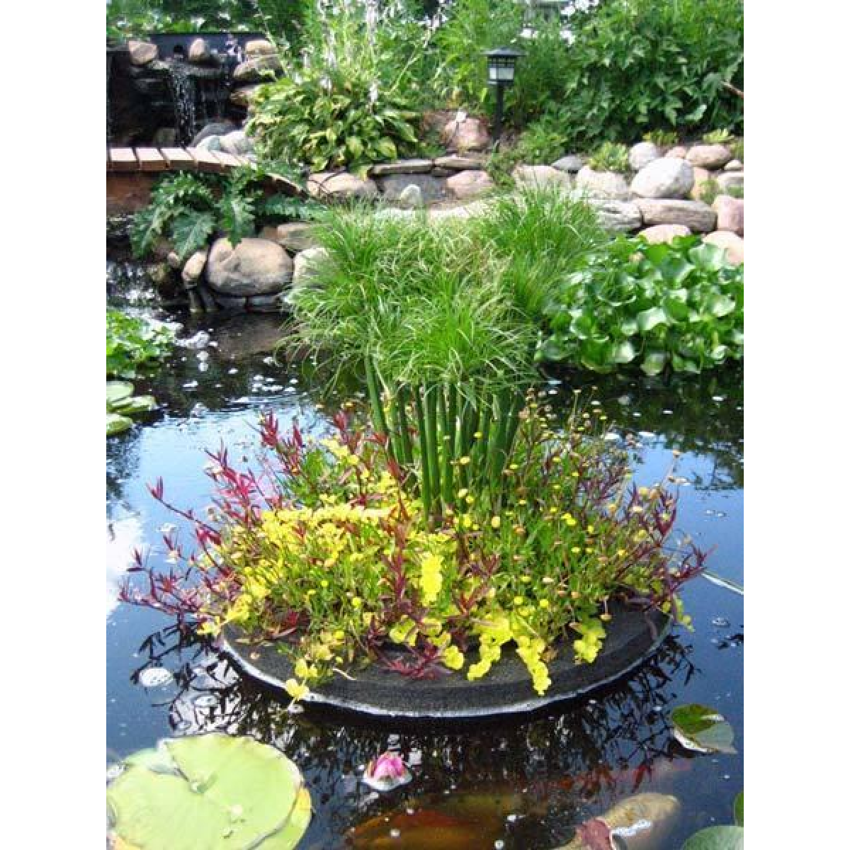 Ця товарна позиція - плаваюча матриця для облаштування плаваючого острова, водної клумби діаметром 35 см та висотою 10 см. Прекрасно підійде для вологолюбних "суходольних" рослин, які не полюбляють затоплення коренів - петунія, сурфінія, фуксія, бальзаміни, колеуси, віола, гацанія, традесканції, бегонії та ін.