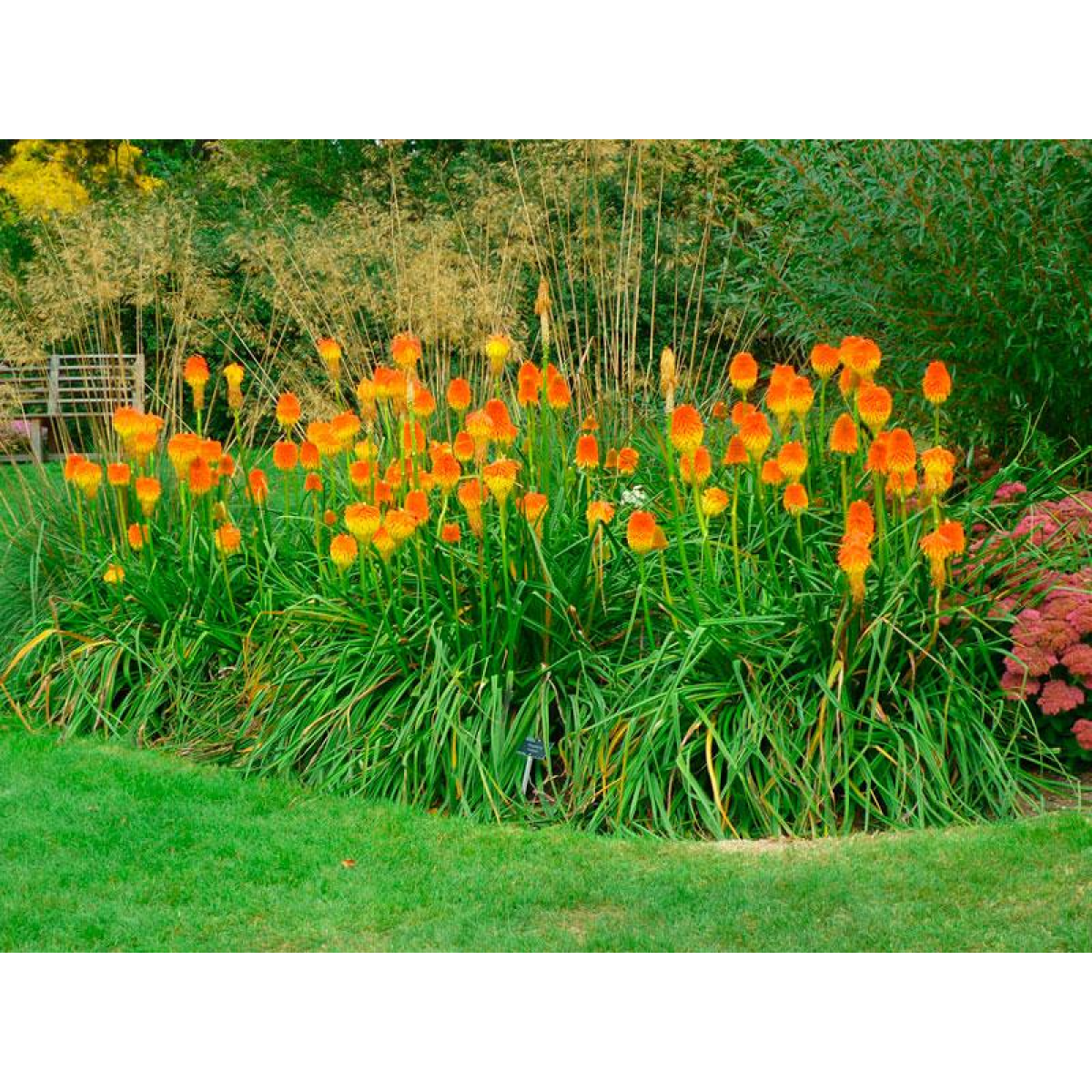 КНІФОФІЯ ВІЧНОЗЕЛЕНА - травяниста, вічнозелена, красивоквітуча рослина, які можна вирощувати на сонячних місцях біля ставка, зимостійка без укриття. Дуже красиво та рясно квітне. У висоту достигає 70 см.