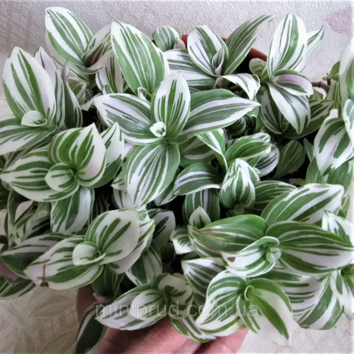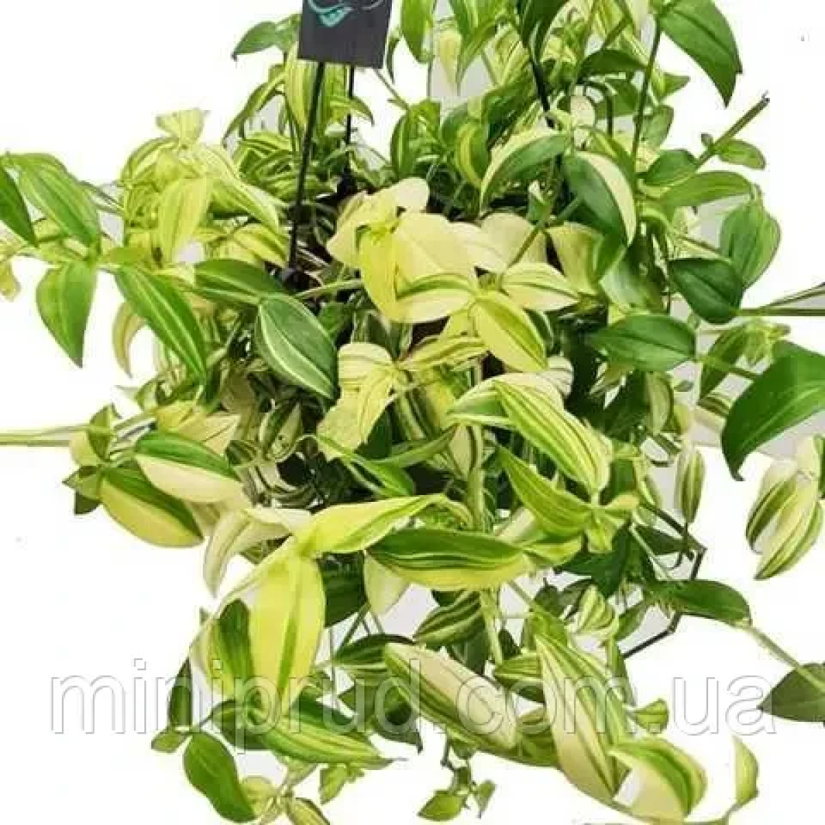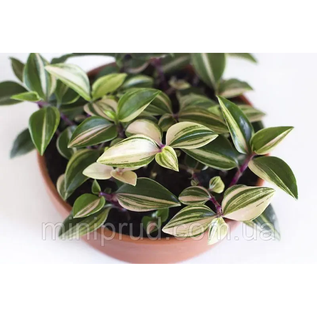 ТРАДЕСКАНЦІЯ ПРИРІЧНА - вічнозелена тропічна рослина, яка в природі росте по вологих берегах річок, звідки і назва. Традесканція прирічна добре знайома як кімнатна рослина, а також як садова рослина для теплої пори року, що вирощується в клумбах, на балконах, підвіконнях, садових горщиках та в горщиках з підвісами. Ми пропонуємо нове використання цієї незвичайної за своєю декоративністю рослини - по берегах водойм (для цього горщик з рослиною потрібно поставити або прикопати біля водойми або в зоні невеликого затоплення - до 10 см або пересадити безпосередньо в ґрунт водойми). У прибережній зоні вашого ставка традесканція швидко розростатиметься, красиво опуститься плетями у воду, місцями - створить красивий багатобарвний килимок і вкорениться всіма гілочками. Ще один варіант незвичайного використання традесканції прирічної – плаваючі острови. Для цієї ідеї традесканція - незамінна, вона спускатиметься батогами у воду, випускатиме коріння. Існує думка, що традесканція виділяє речовини, які активно борються із зеленими водоростями, тому часто, з цією метою, любителі акваріумів ставлять традесканцію зверху на акваріум, щоб її гілки спускалися у воду. Рослина у кліматичних умовах України не зимує.