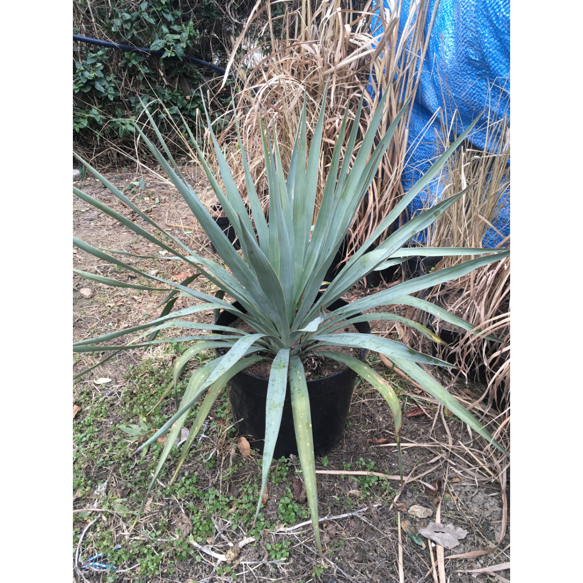 ВЕЛИКИЙ КУЩ ЮККИ АЛОЕЛИСТОЇ в технологічному горщику. З технологічного горщика методом перевалки рослину можна садити навіть влітку.