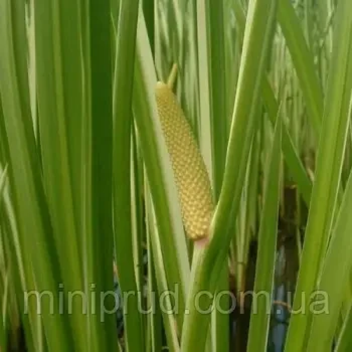 АІР ВАРІЄГАТНИЙ - прибережна рослина. Це варієгатна форма аіру болотного. Можна висадити безпосередньо в грунт біля берегу (в зоні затоплення або рясного поливу) або у воді (на глибині до 10-20 см) у горщику або безпосередньо у водойму. Розрастається повільно (на відміну від аіру болотного). У нашій кліматичній зоні чудово зимує прямо у водоймі. У дикій природі аір варієгатний не росте. Рослина має інсектицидну дію, рекомендується для посадки на біоплато.