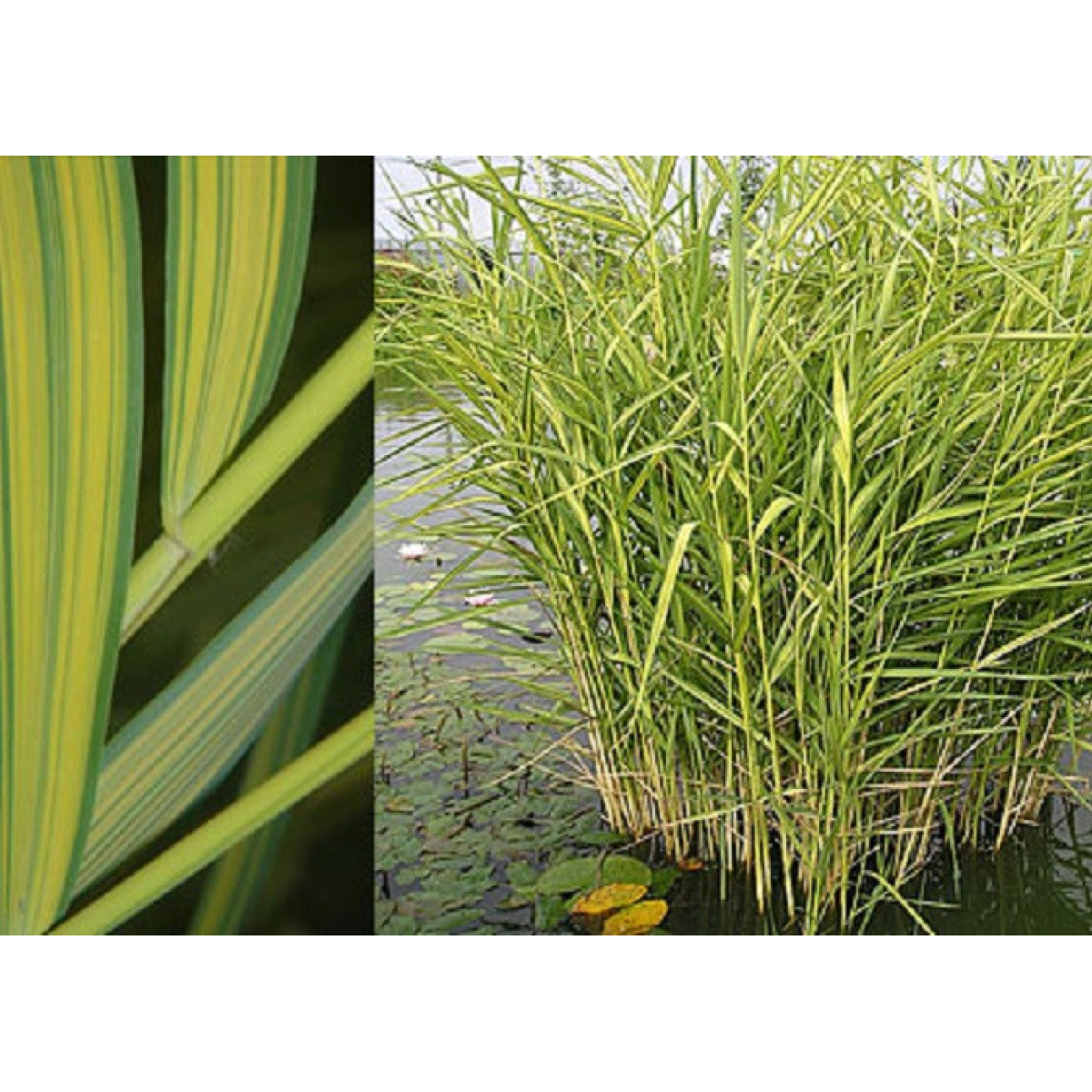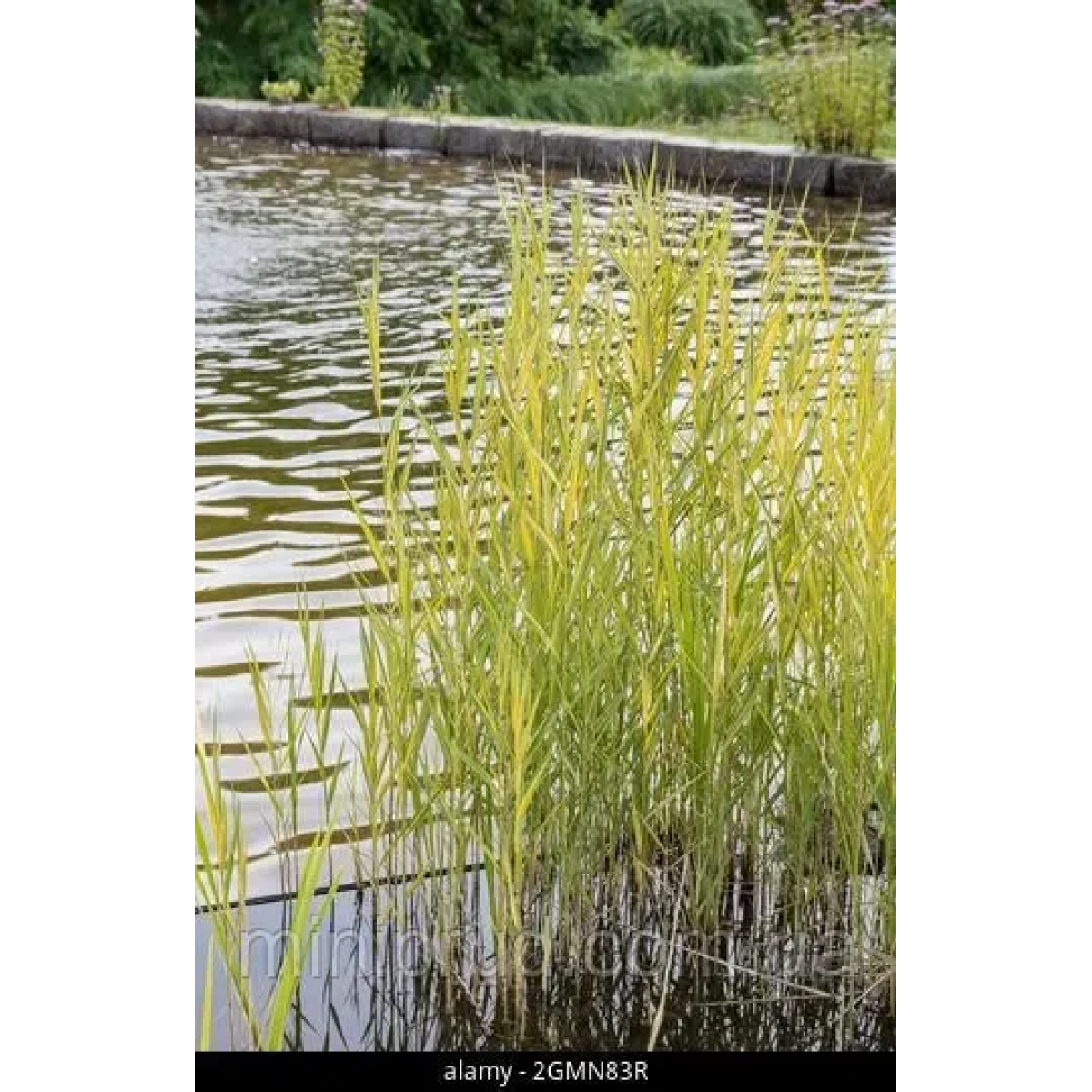ТРОСТИНА СМУГАСТА - смугастий, варієгатний сорт тростини, дуже декоративний. Це багаторічна водна та болотяна трав'яниста рослина, зазвичай виростає до 1 м заввишки. Можна висаджувати у вологий грунт або на мілководді, мілинах і по берегах водойм на глибині 5-25 см. Невибагливий, швидко розростається. В Україні зимує у водоймах.