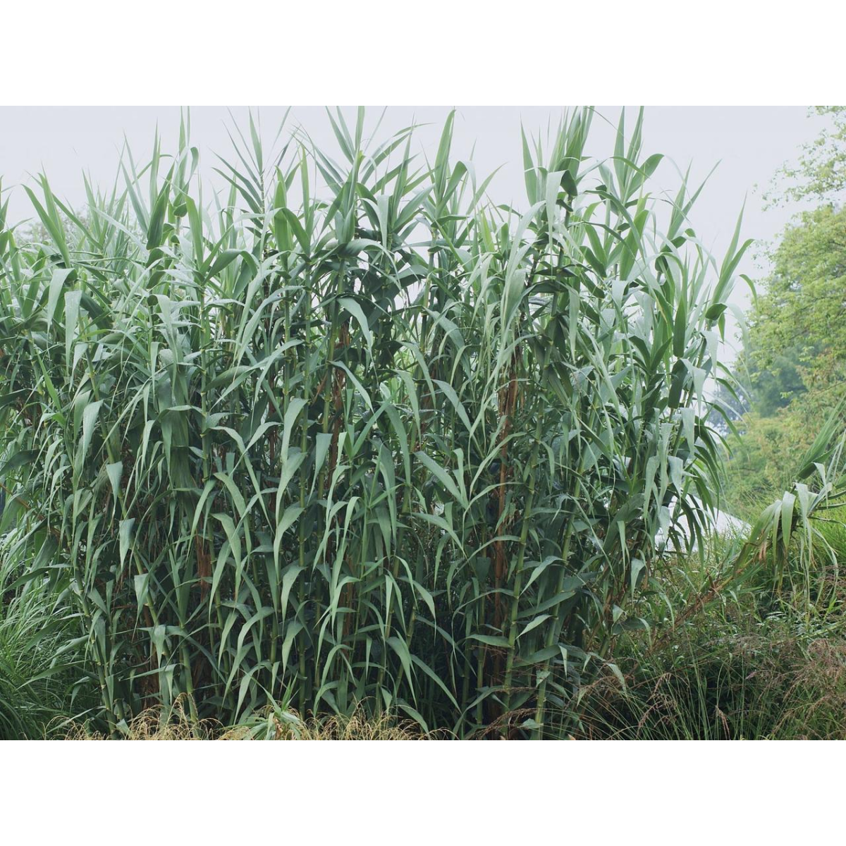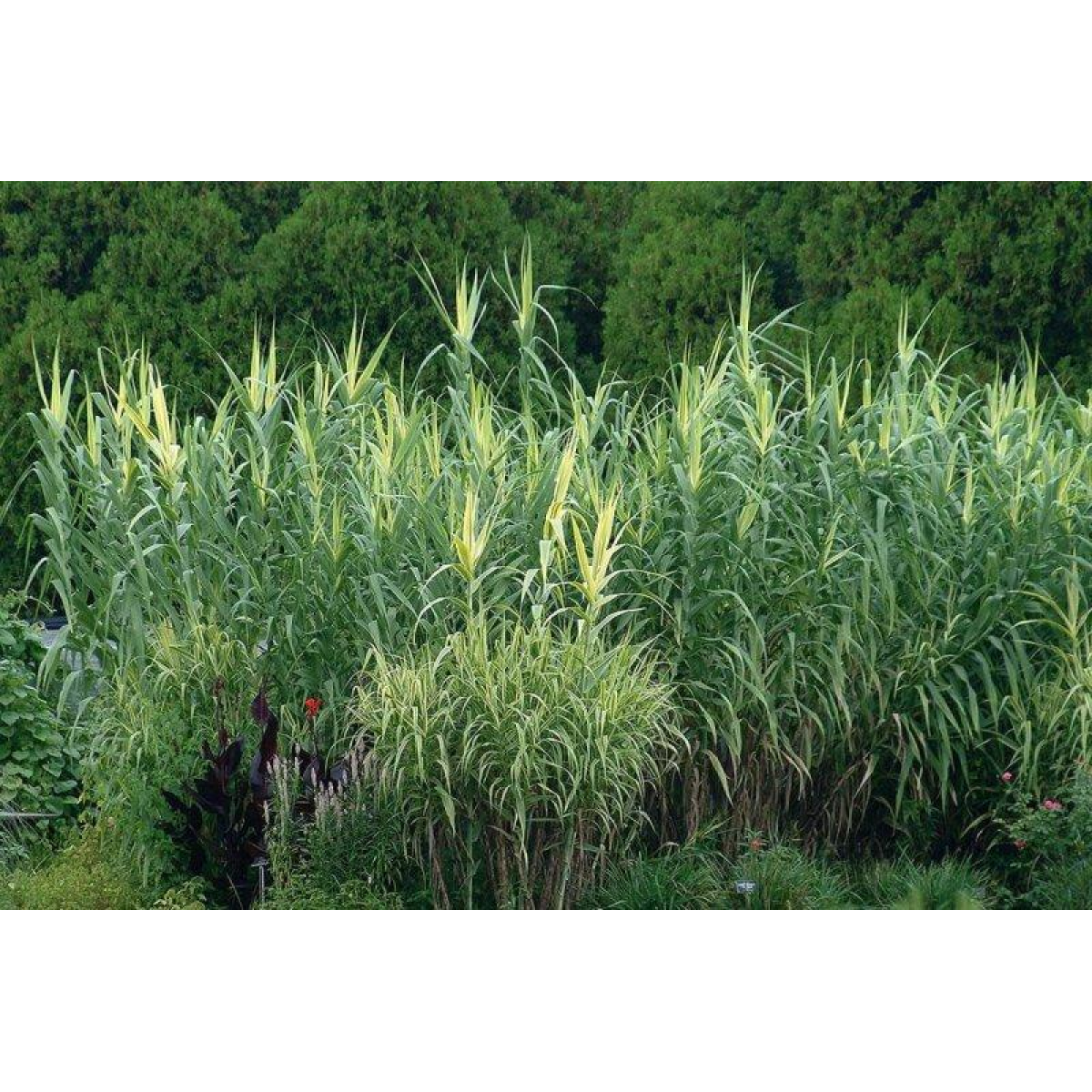 AРУНДО тростинний варієгатний або ОЧЕРЕТ гігантський строкатий - одна з найкрасивіших рослин для озеленення прибережної зони водойми. Рослина чудової висоти, в сприятливих умовах може досягати висоти до 3 м. Високий кущ, стебла прямі колінчасті, листя по вигляду нагадують кукурудзяні з красивими білими і яскравими жовтими смугами. Розвіває по вітру плоскі широкі жорсткі листя і вінчається пишною мітелкою.