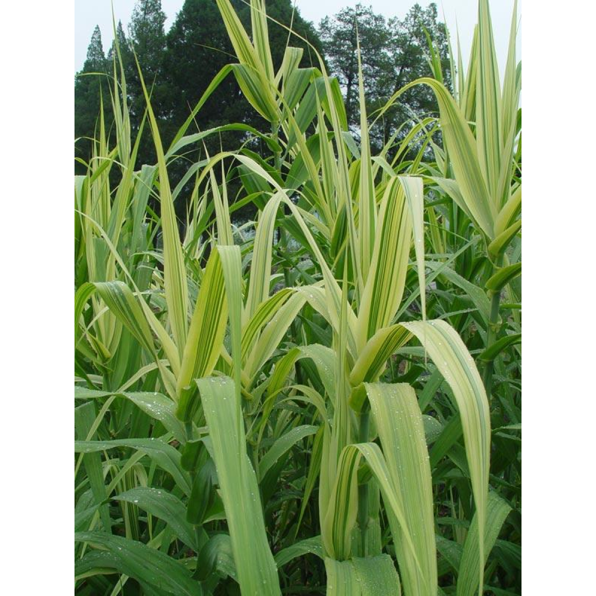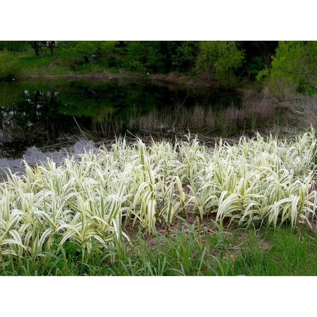 AРУНДО тростинний варієгатний або ОЧЕРЕТ гігантський строкатий - одна з найкрасивіших рослин для озеленення прибережної зони водойми. Рослина чудової висоти, в сприятливих умовах може досягати висоти до 3 м. Високий кущ, стебла прямі колінчасті, листя по вигляду нагадують кукурудзяні з красивими білими і яскравими жовтими смугами. Розвіває по вітру плоскі широкі жорсткі листя і вінчається пишною мітелкою.