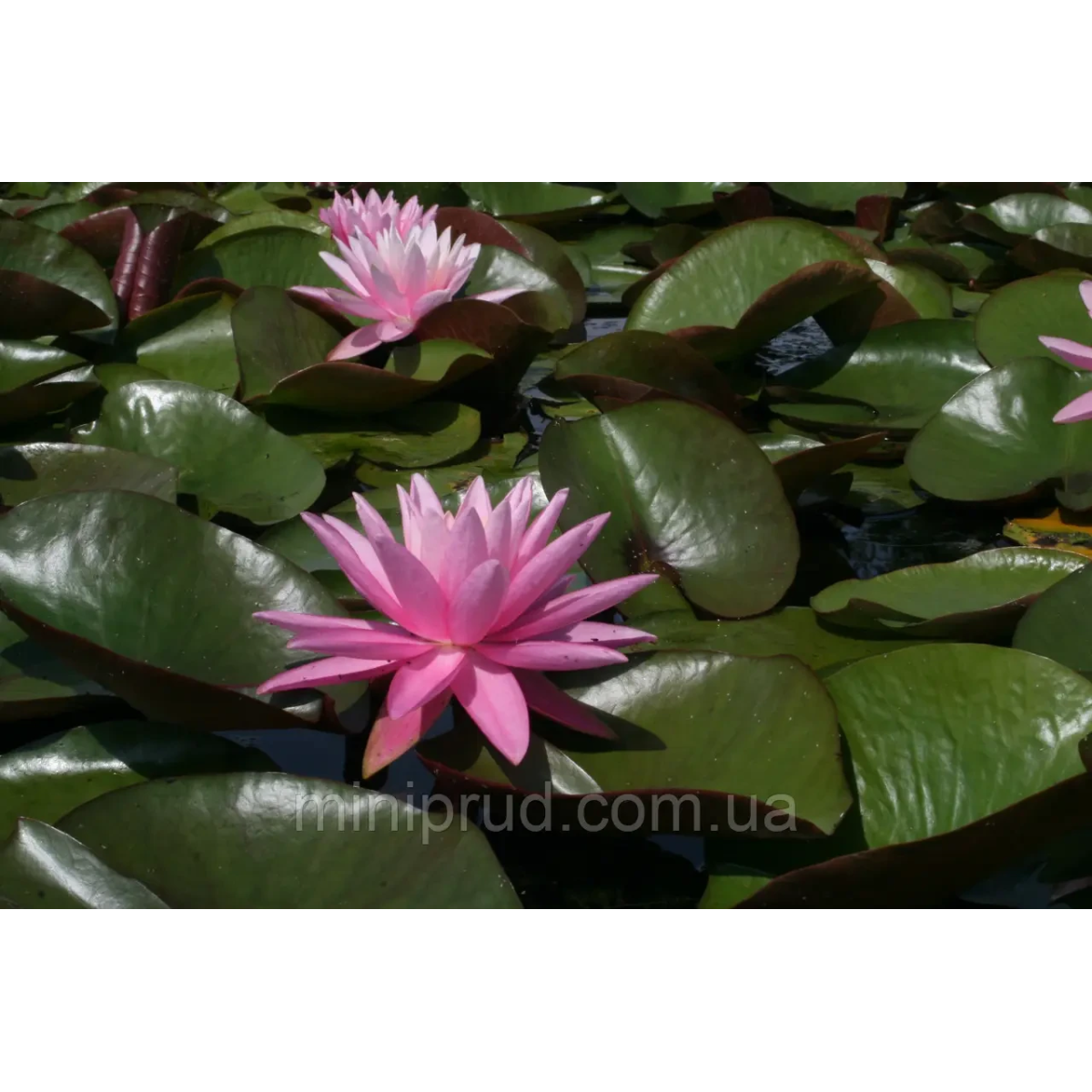 НІМФЕЯ НАЙДЖЕЛ (Nymphaea Nigel) - середньорослий, компактний сорт із яскраво-рожевими квітами, квітка з гострими пелюстками, зірчаста. Листки середні, змінюють свій колір від темно-бордових до темно-зелених. Зимує в непромерзаючій водоймі. Підійде для маленьких ставків або для середніх з невеликою глибиною посадки.