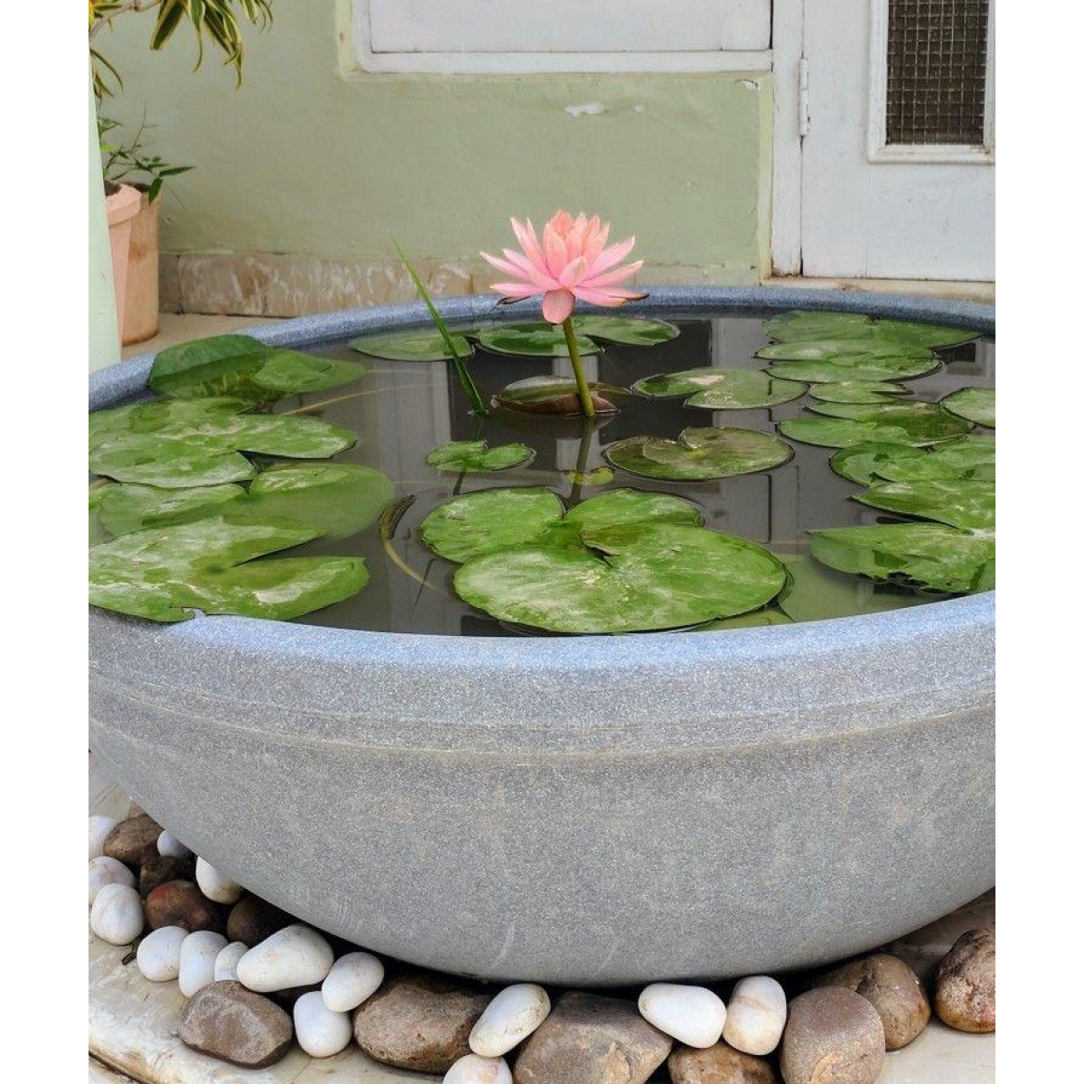 ВЕЛИКИЙ КУЩ німфеї, посаджений у великий сітчастий горщик. Дорослий кущ 3-5 річний.