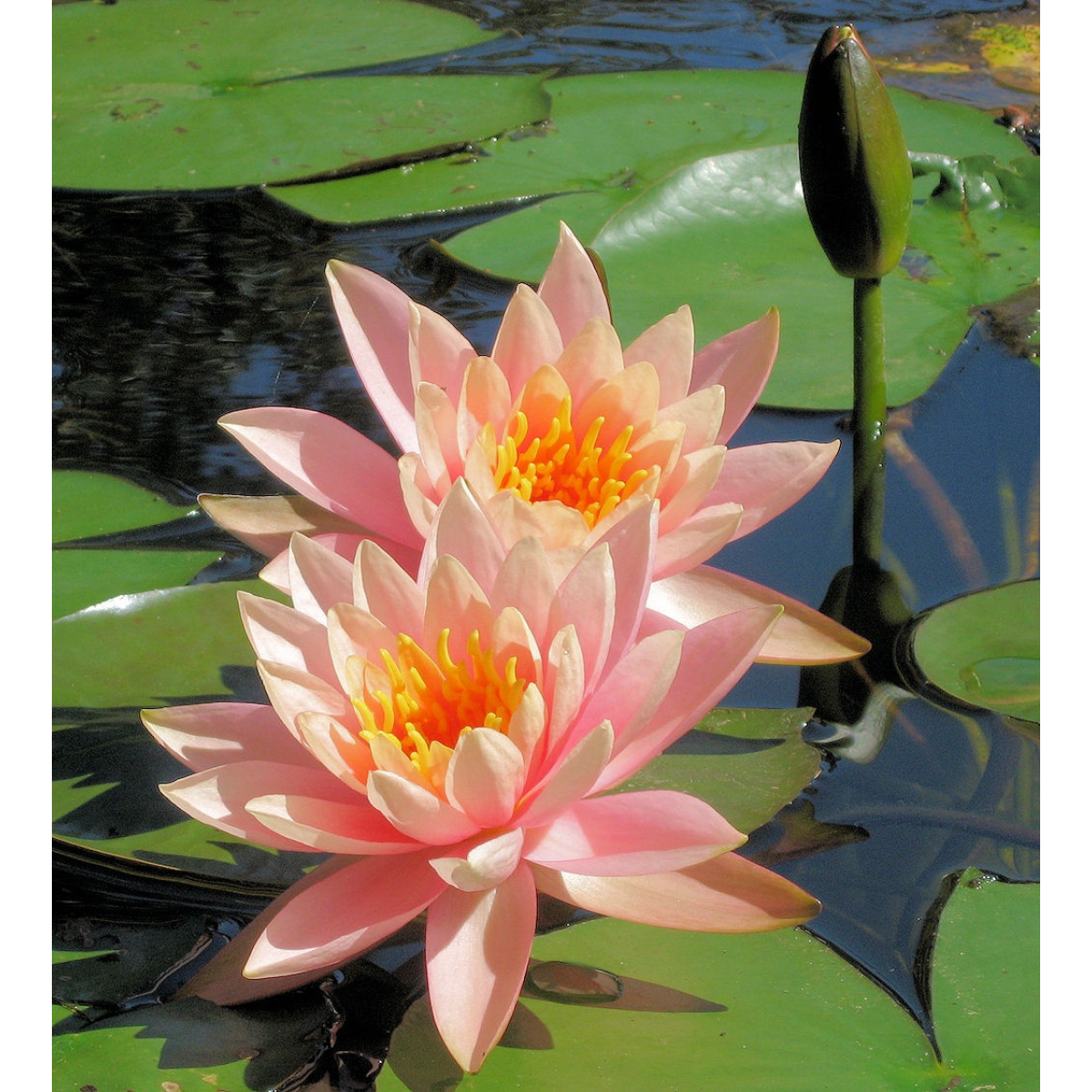 НІМФЕЯ "КОЛОРАДО" - одна з найбільших німфей з лососевими квітами. Сорт колекційний. Швидкорослий та невибагливий. Підходить для вирощування у великих та середніх ставках. Рясно цвіте все літо, розмір листя і квітів залежить від розміру ставка - у великих ставках листя і квіти дуже великі. Квіти зірчасті, на ніжці 10 см, лососево-рожеві. При недостатній площі ставка частина листя стирчить над водою. Практично не хворіє, легко переносить пересадку. Зимує в непромерзаючій водоймі. Підійде для ставків-початківців. Для великих, середніх ставків та природних водойм.