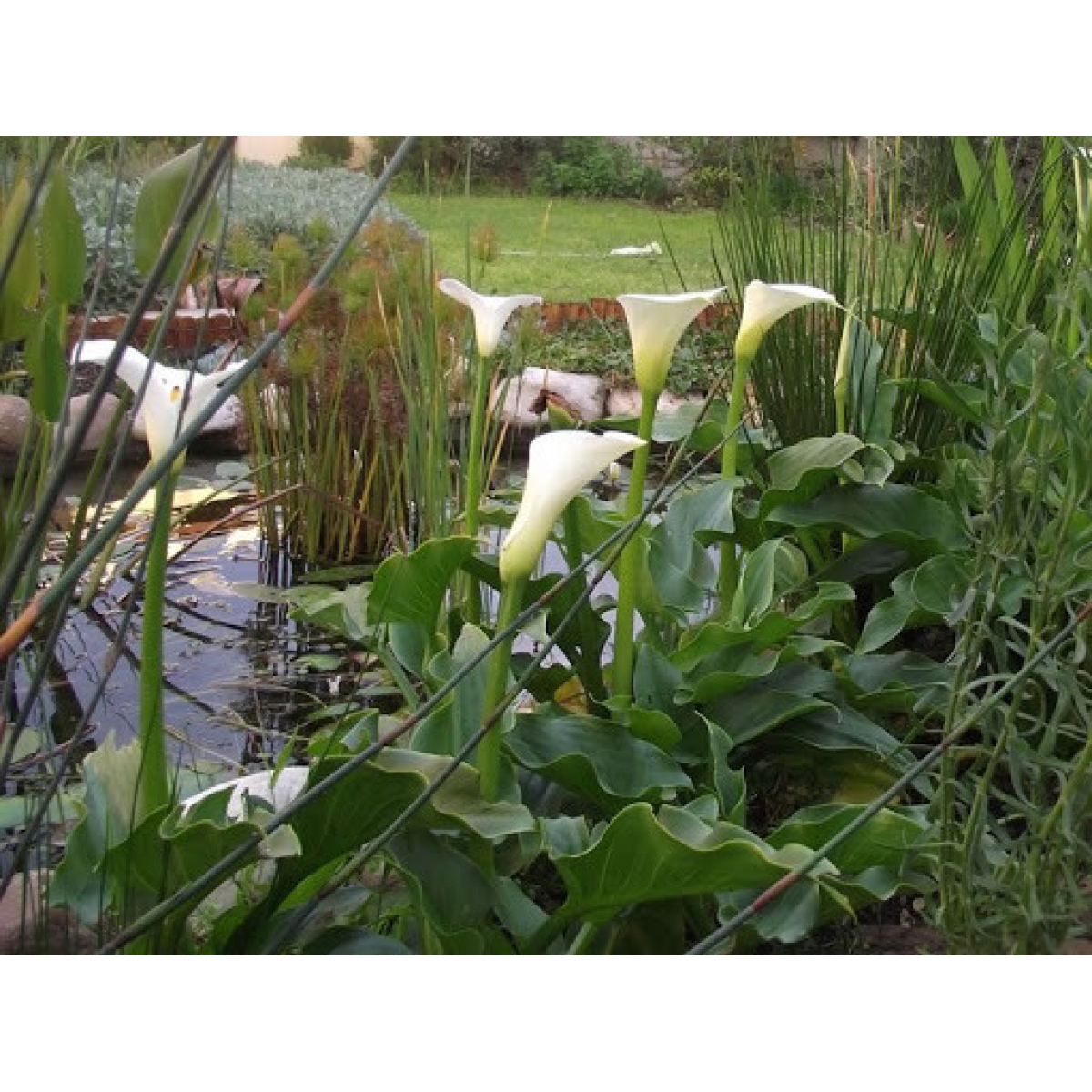 Цвітіння кали продовжується з березня по жовтень, але кожна квітка на кущі тримає свою форму більше тижня. Якщо догляд за калами проводиться правильно, то на квітучому кущі буде приблизно від семи до дванадцяти квіток. Наші кали висаджені в сітчасті горщики і призначені для утримання у воді. З кінця березня по жовтень калла може бути розміщена в ставку. З жовтня по березень – в будинку в ємкості із водою або відправлена на зимівлю.
