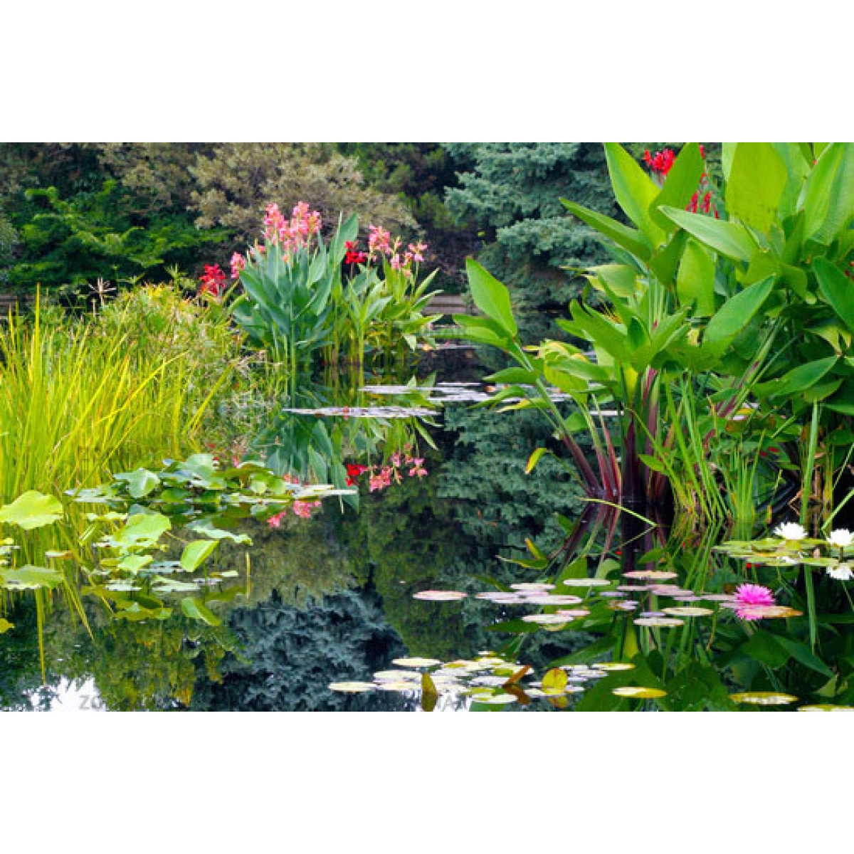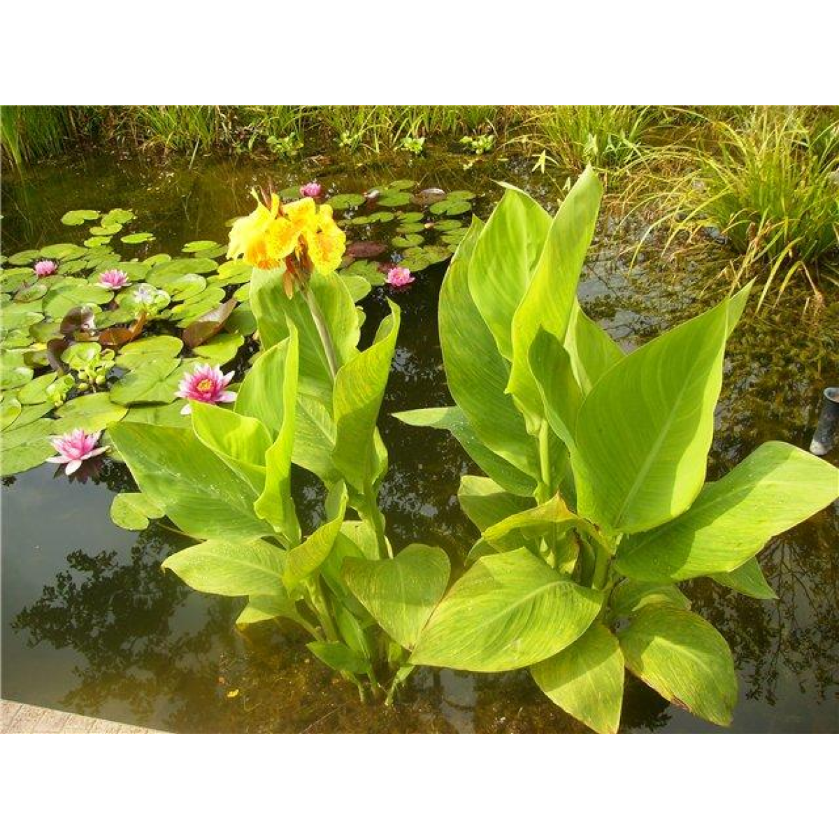 КАННИ ВОДНІ – дуже гарні квітучі рослини для ставка з великими листям і яскравими квітами на довгих квітконосах. Мабуть, з вертикально зростаючих рослин в ставку - найкрасивіші. Канни будуть радувати вас своїм цвітінням з травня по жовтень місяць. Витримують підмерзання і низьку температуру повітря, але у ставку не зимують. Добре виглядають кілька різних кольорів канн, висаджених поруч. На зимівлю можна: прибрати у теплицю; обрізати листя і поставити в темне місце; занести додому і вирощувати як кімнатну рослину.
